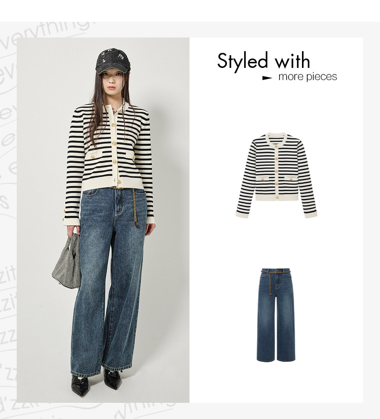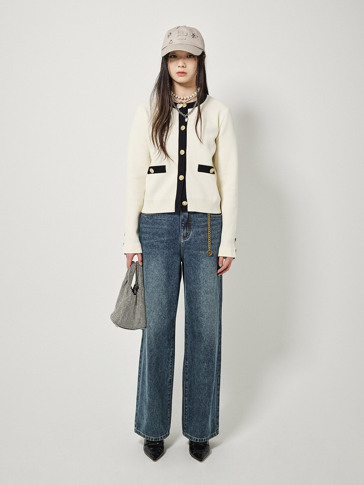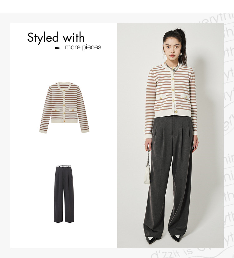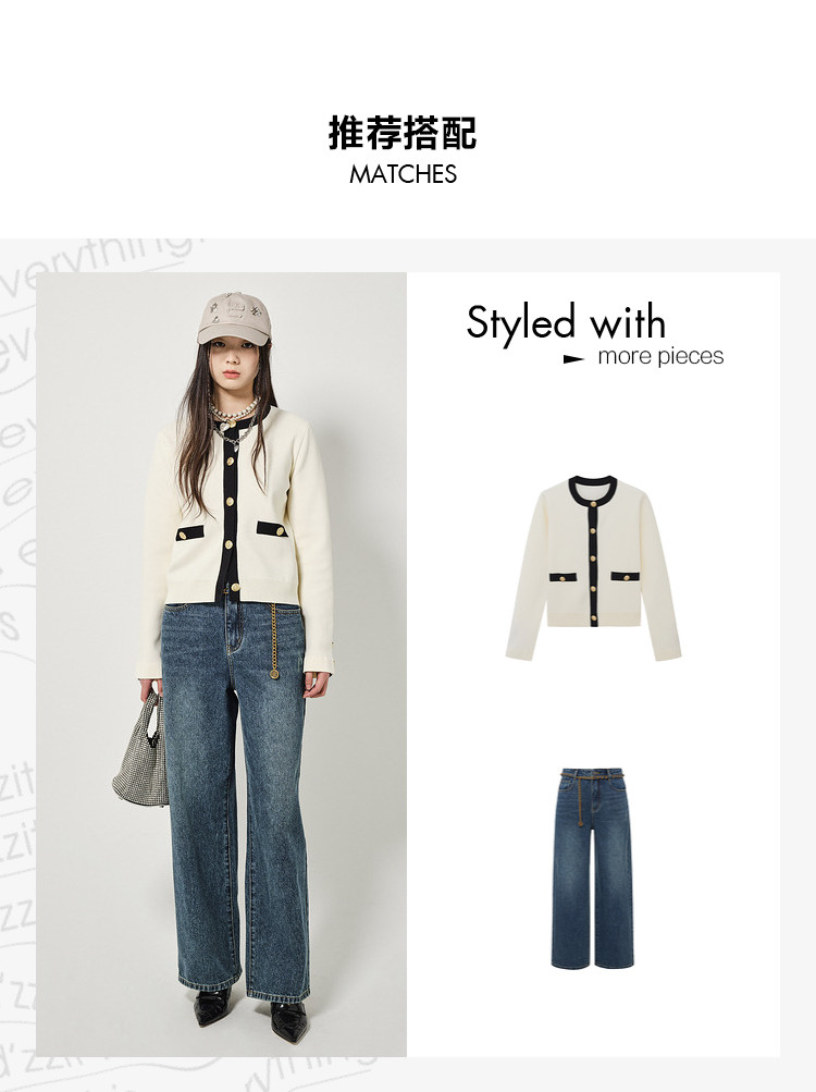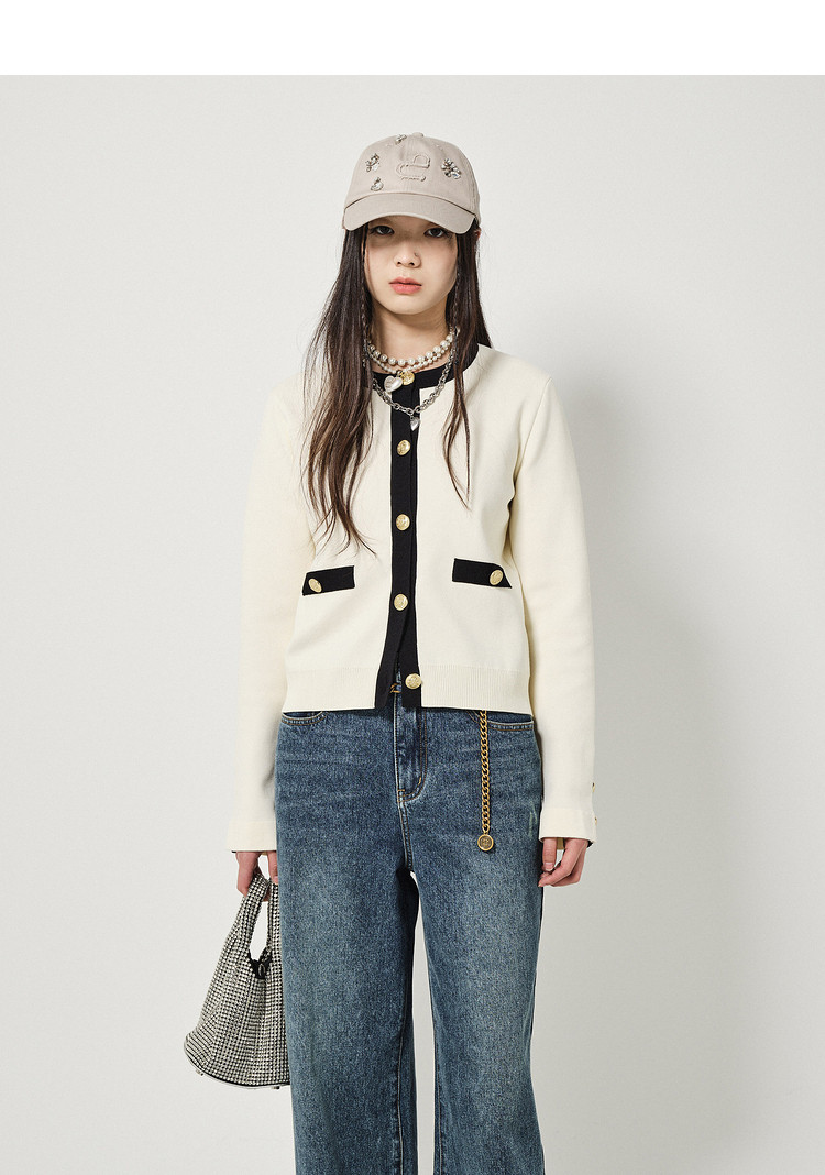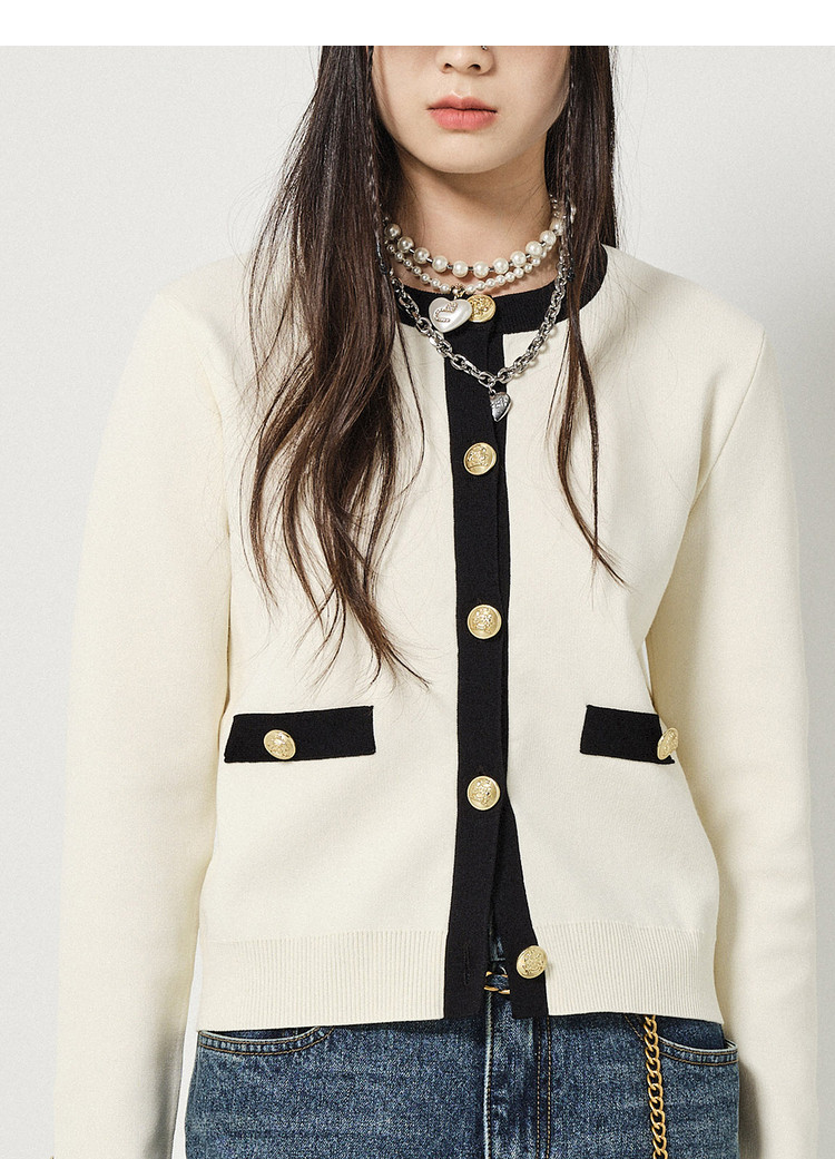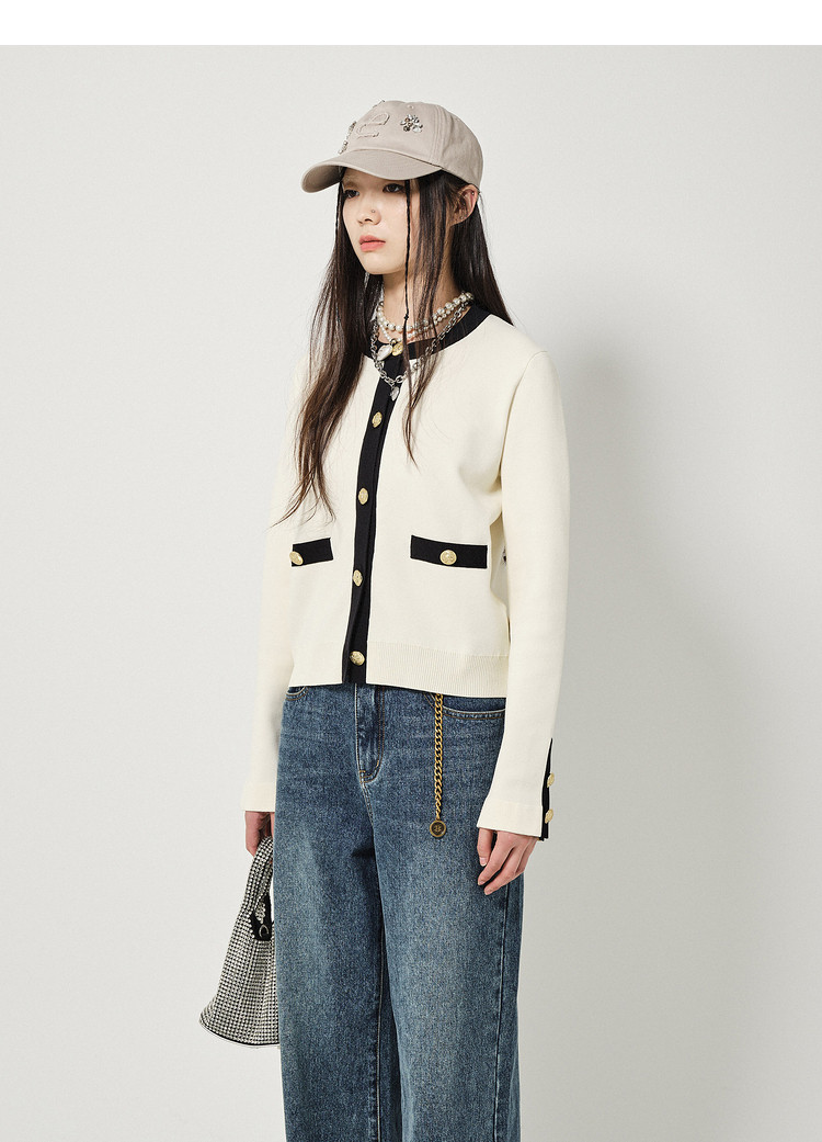 地素针织开衫春秋季专柜休闲圆领撞色上衣女 156555