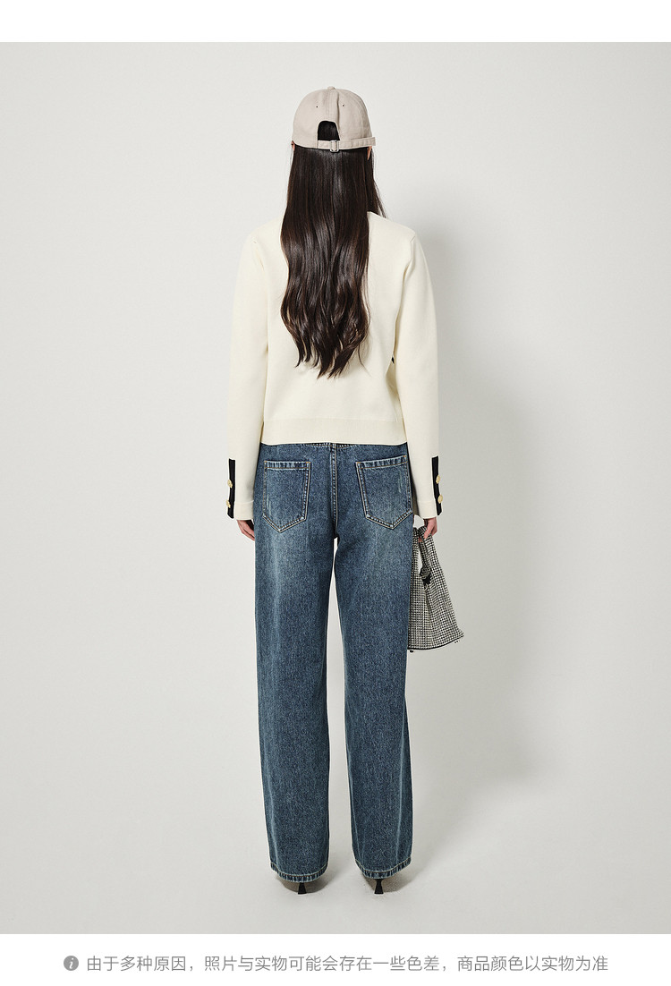商品名称:地素针织开衫春秋季专柜休闲圆领撞色上衣女 156555