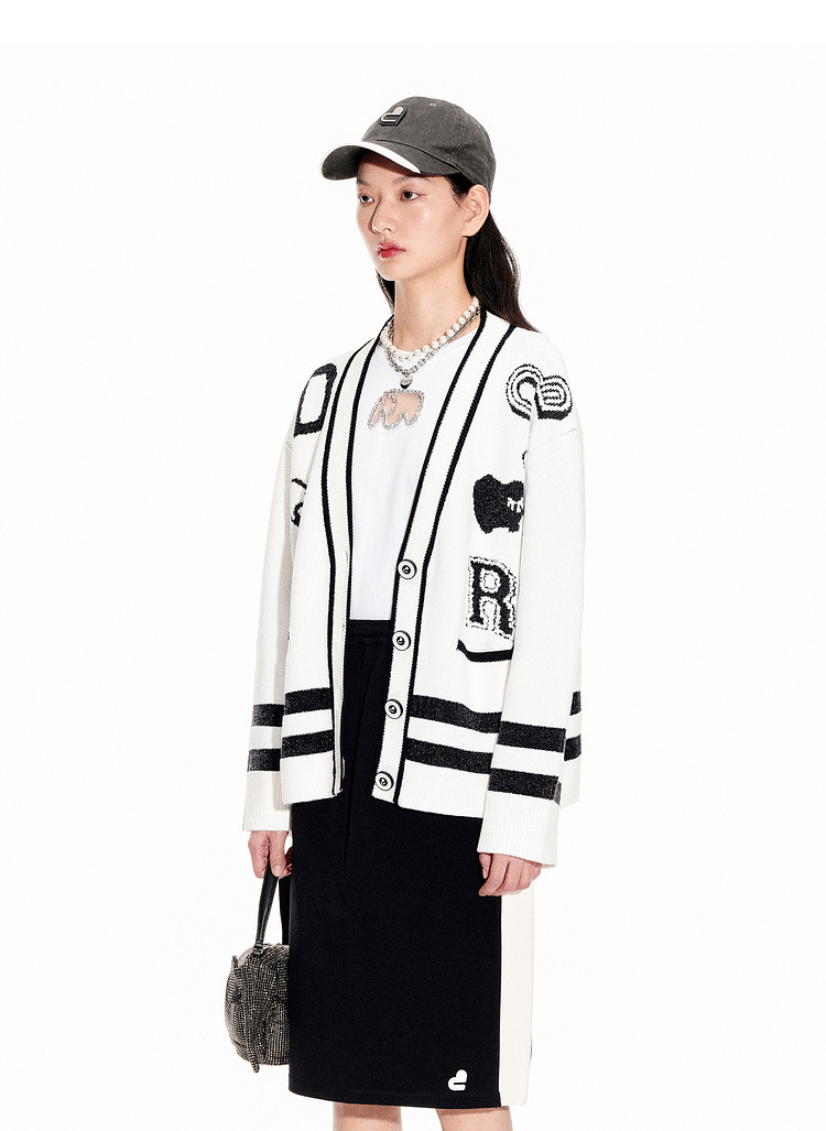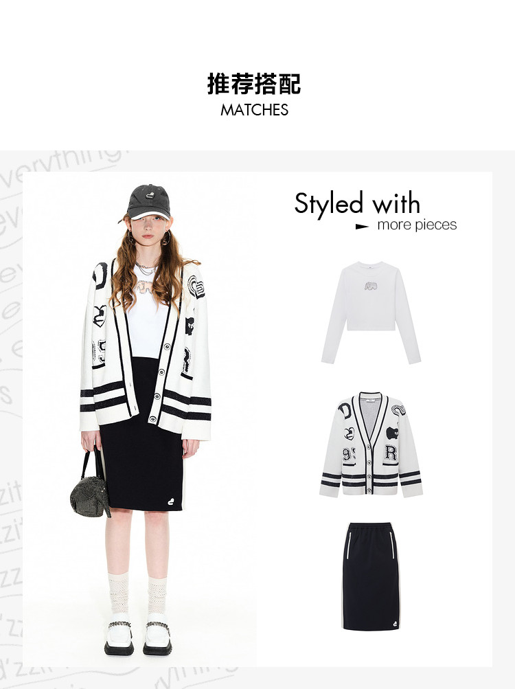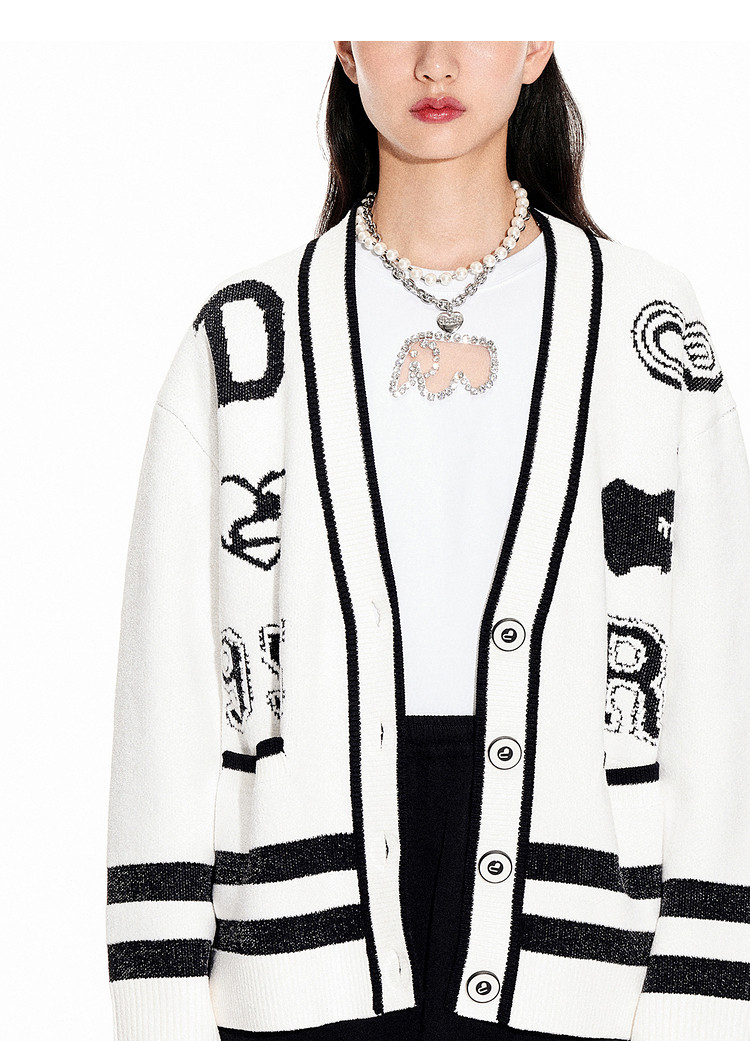 地素春秋专柜小香风黑白撞色设计毛衣开衫女 706059