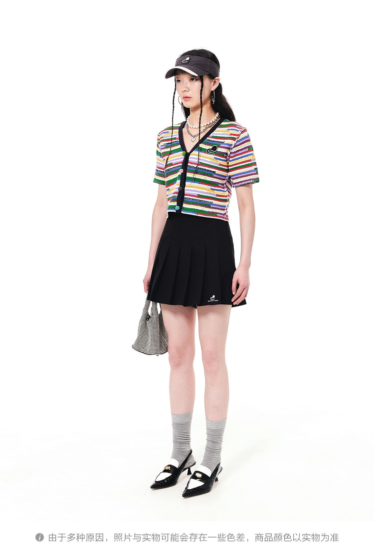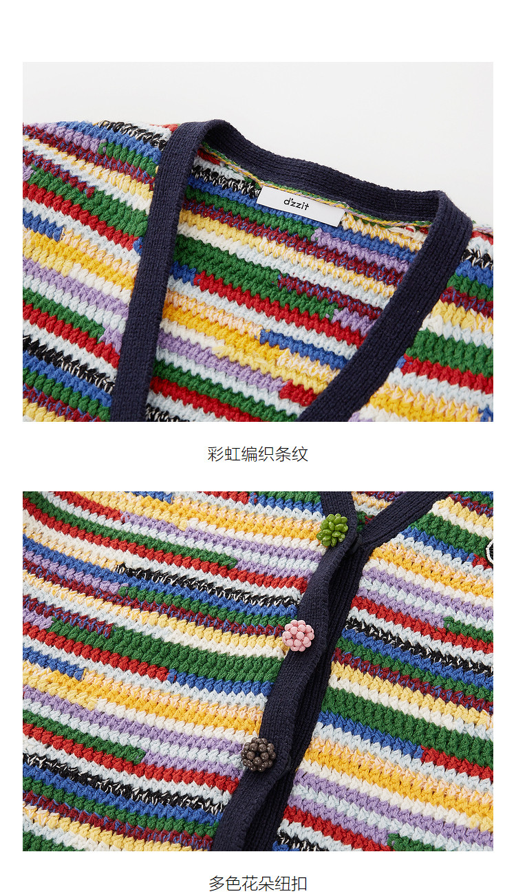 商品名称:地素夏秋季彩虹条纹多色花朵纽扣针织开衫设计感小众 752523