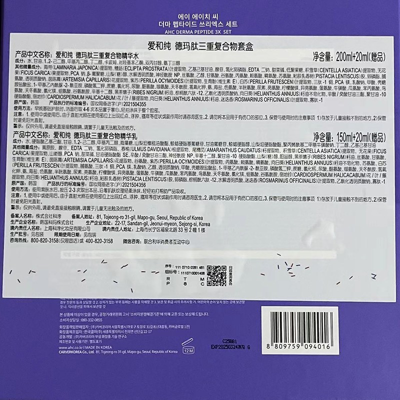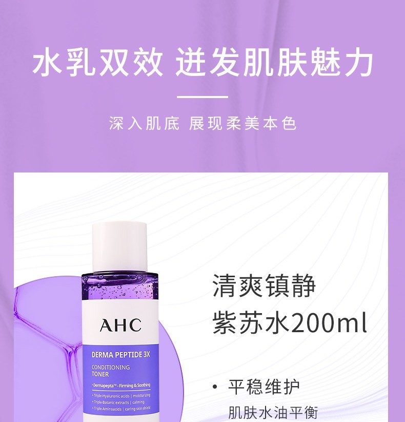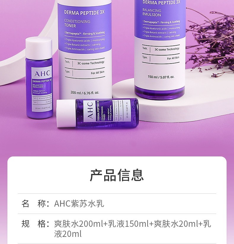 商品名称:AHC/爱和纯 紫苏水乳套盒 200ml水+150ml乳+水小样20ml+乳小样20ml