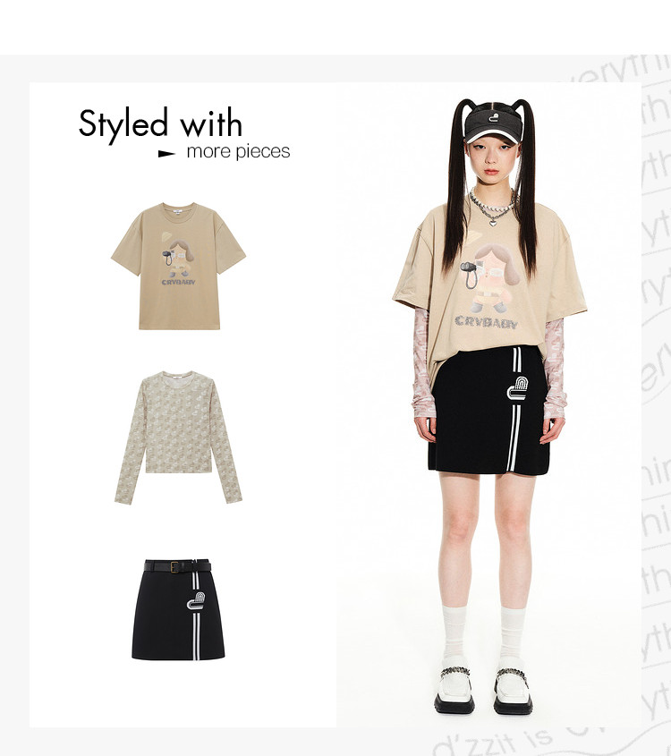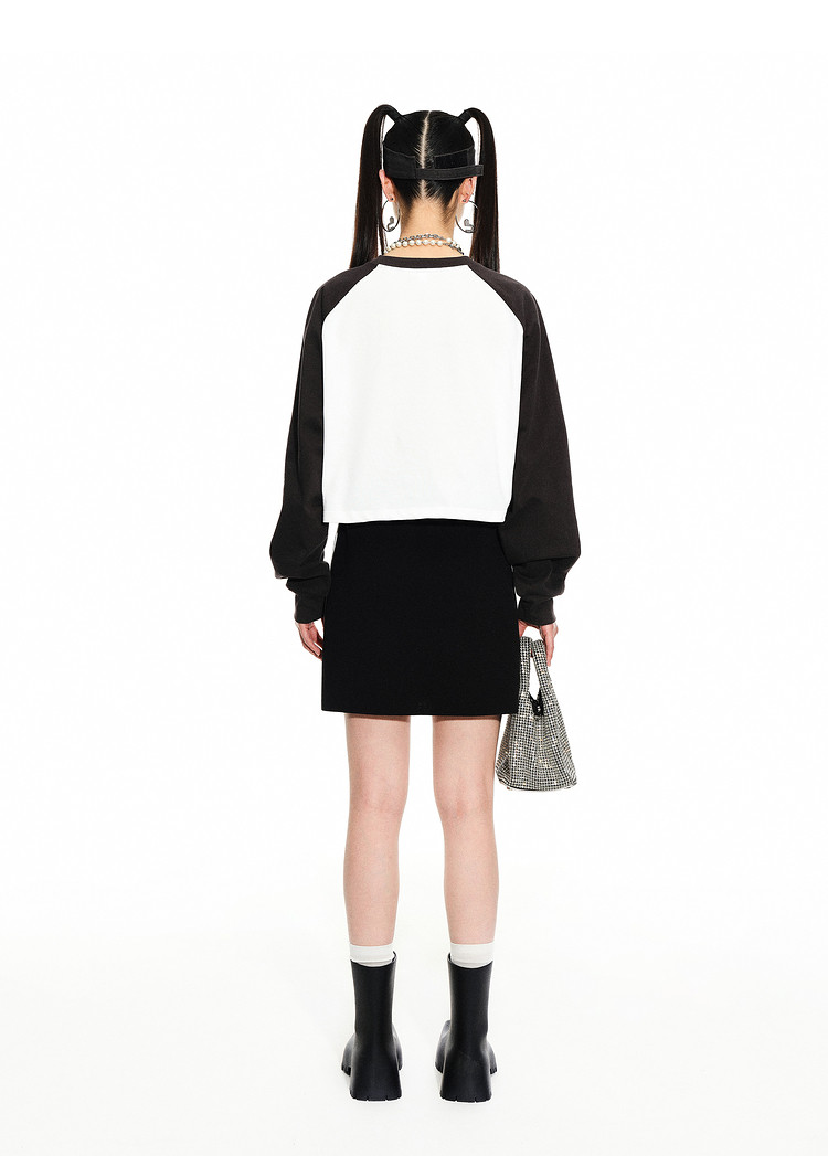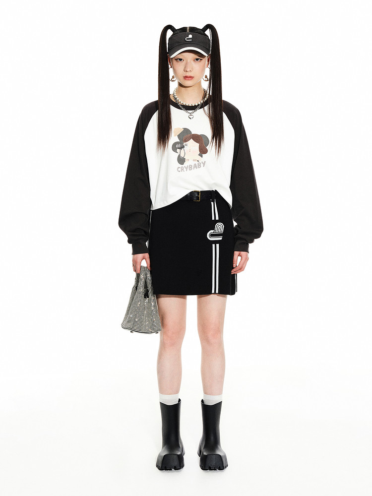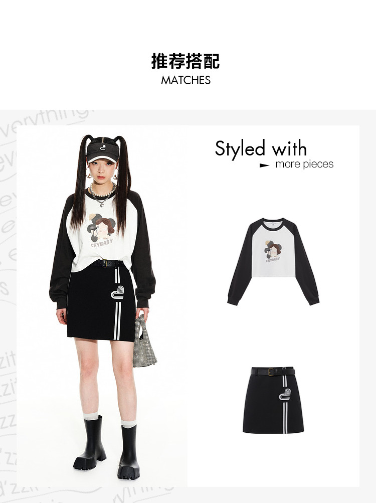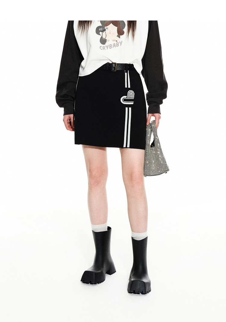 地素 春秋专柜 复古运动撞色设计毛针织衫半身裙短裙女 699275
