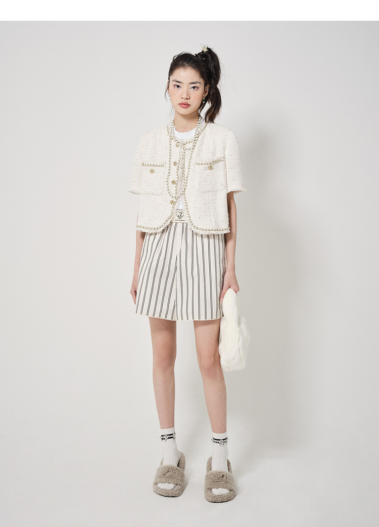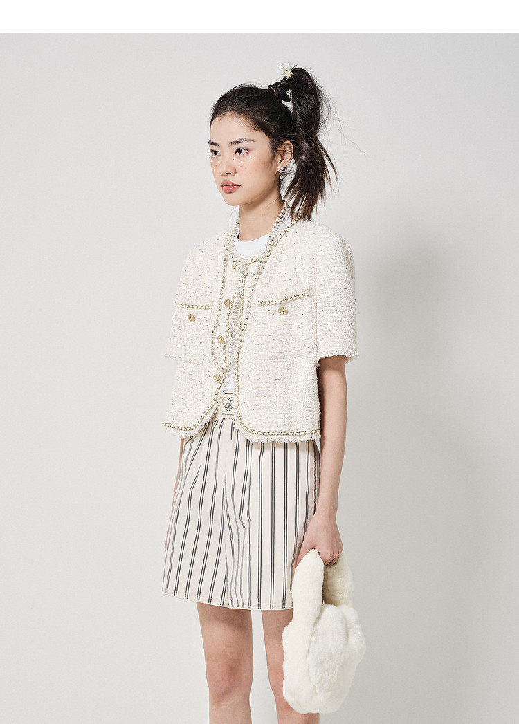 商品名称:地素粗花呢外套春秋季专柜毛边流苏外套女 022987