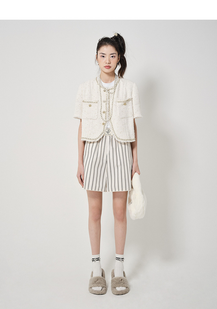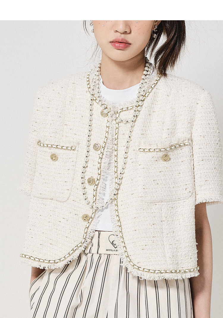 地素粗花呢外套春秋季专柜毛边流苏外套女 022987