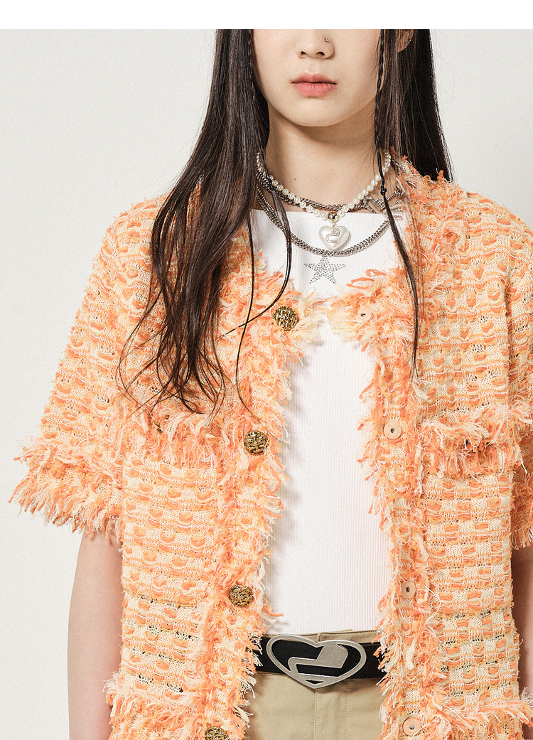 地素针织开衫春秋季专柜小香风肌理感毛须设计外套女 641995