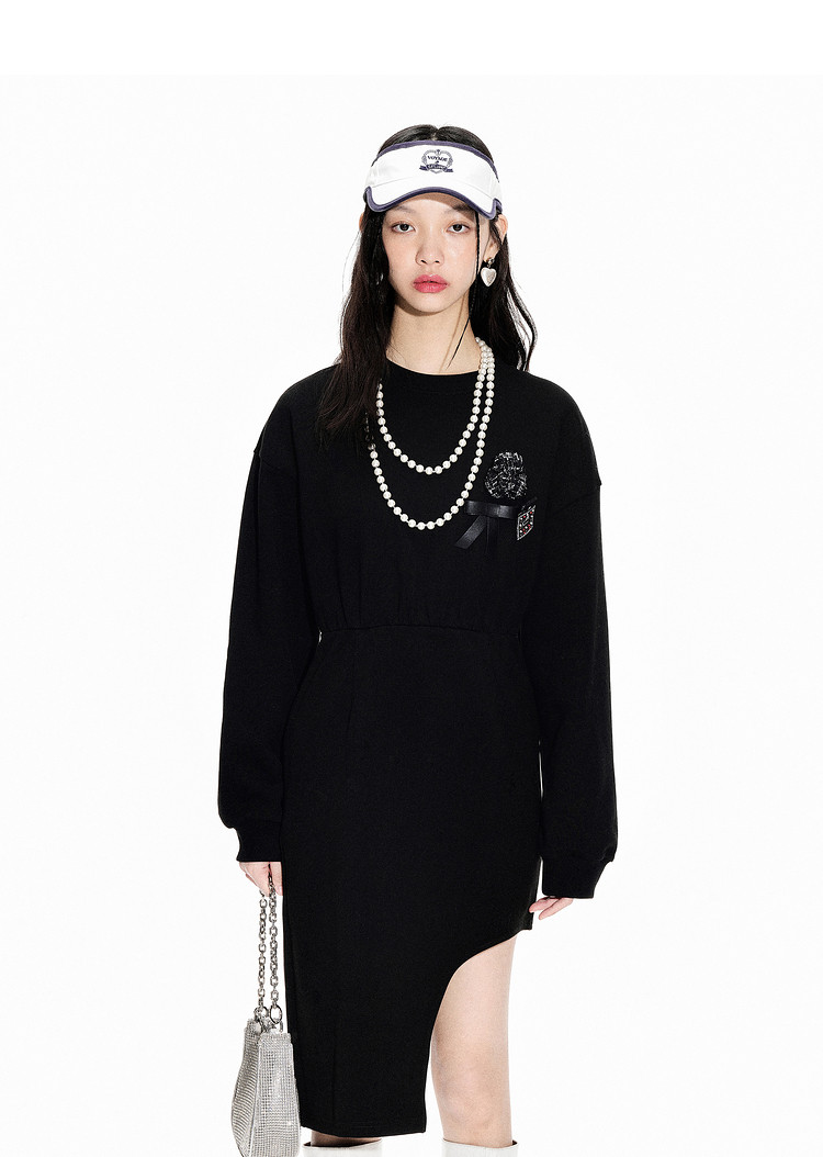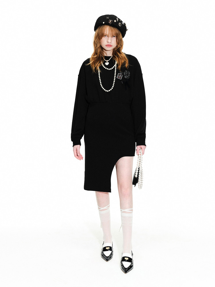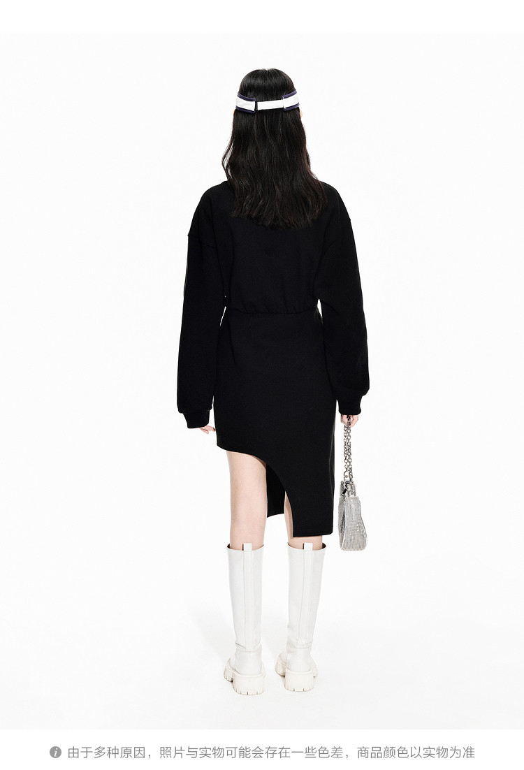 地素春秋季专柜圆领长袖通勤不规则设计感小众连衣裙 030347