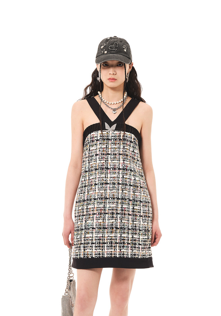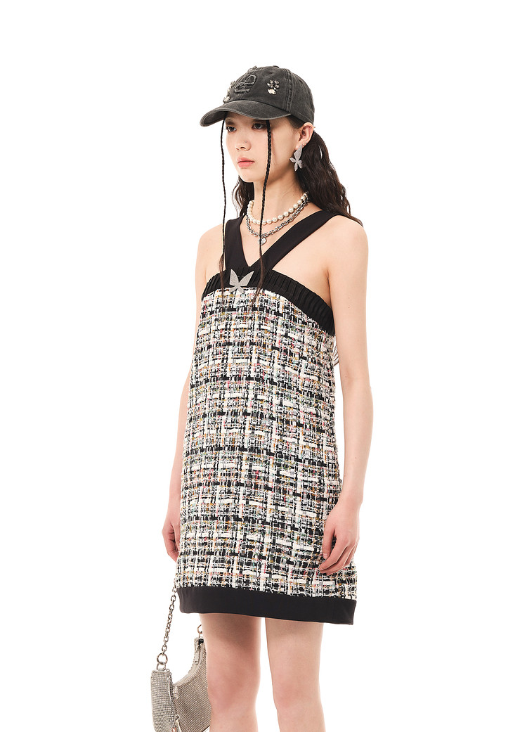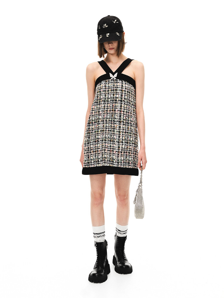 地素夏秋专柜混色花式纱挂脖式连衣裙 156491
