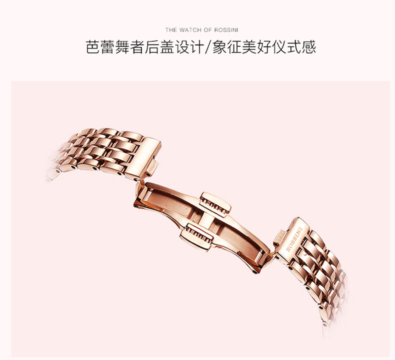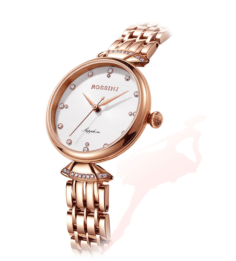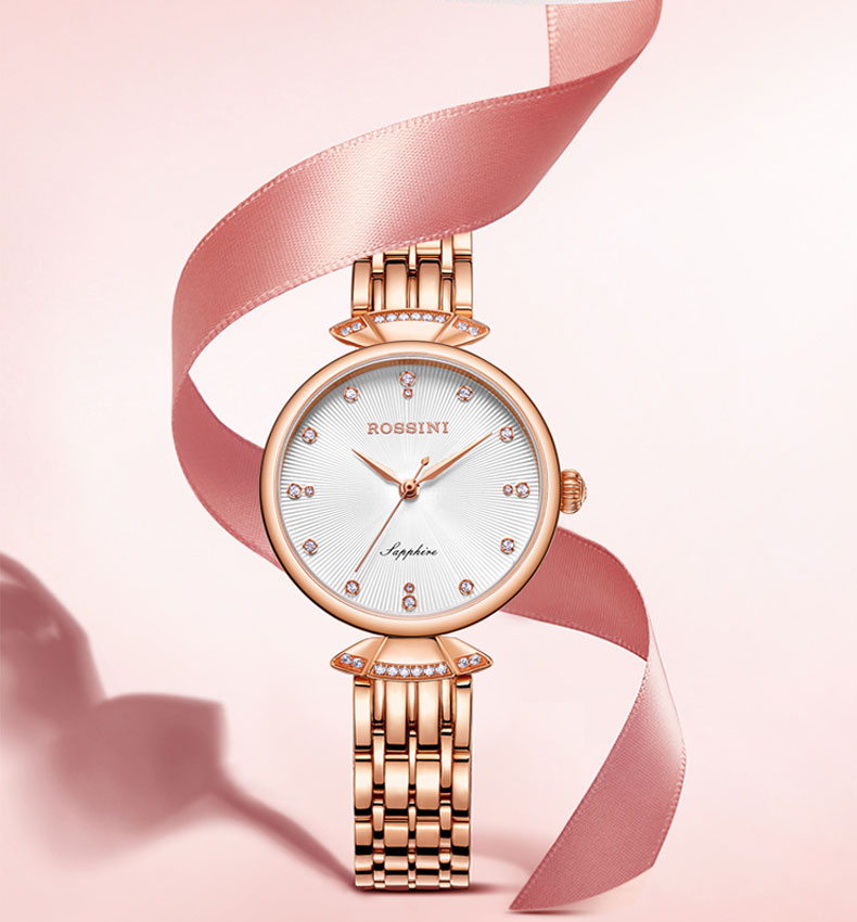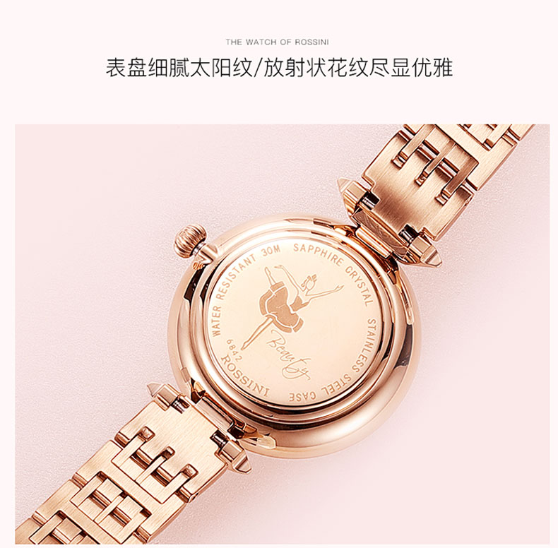 商品名称:Rossini罗西尼 石英表时尚休闲防水镶钻女士手表 白盘钢带 6842G01A
