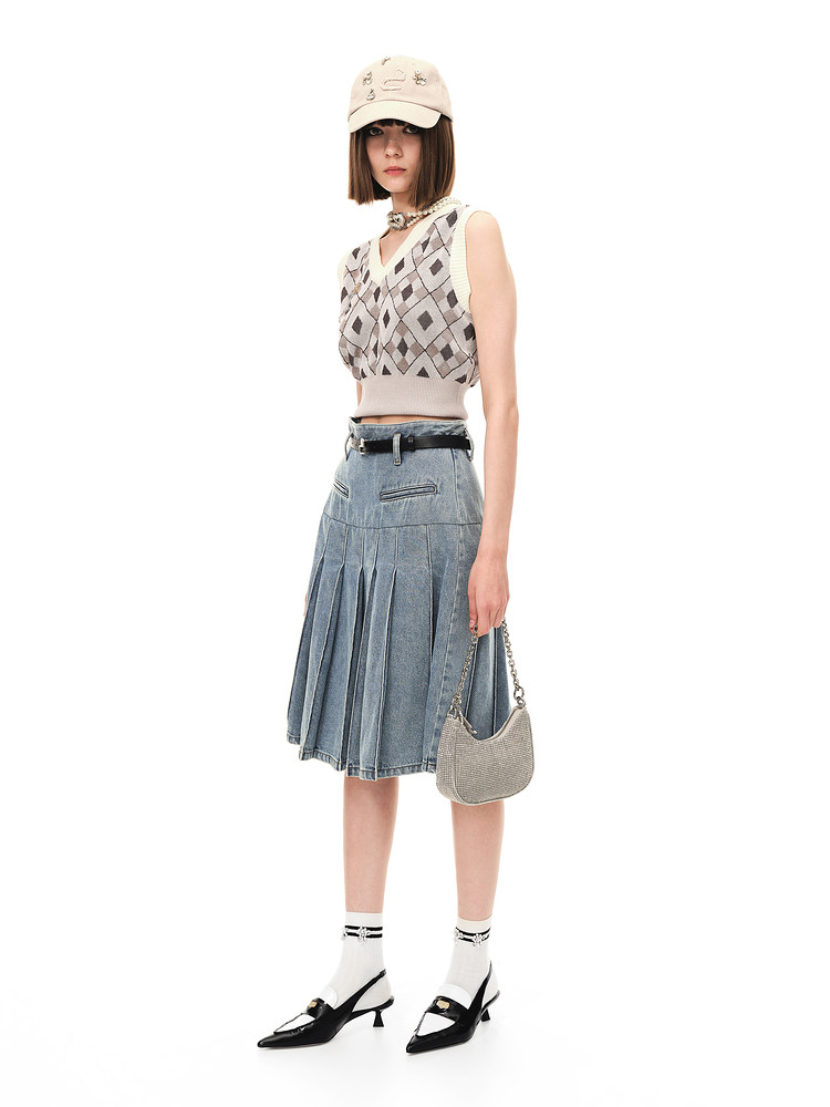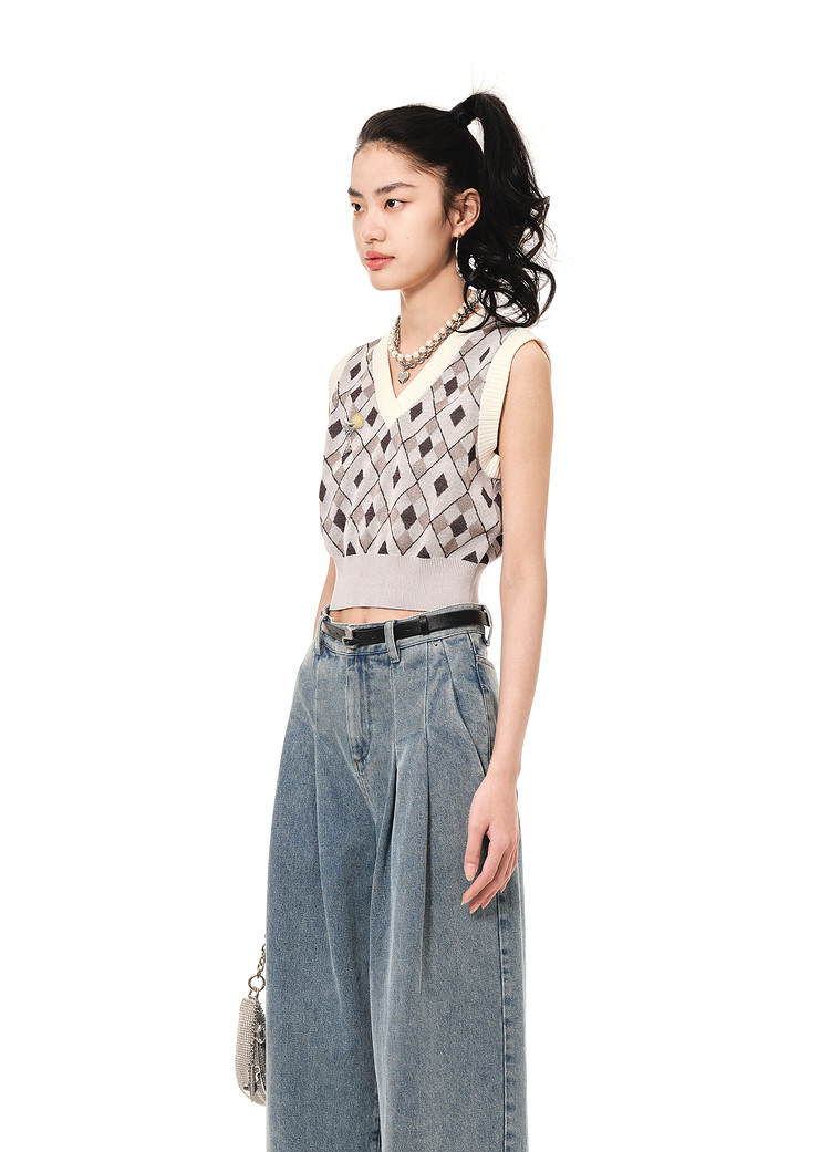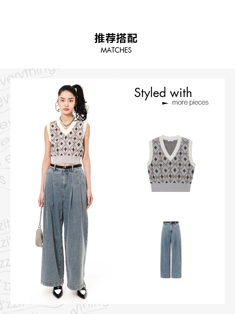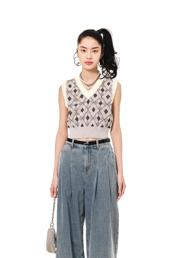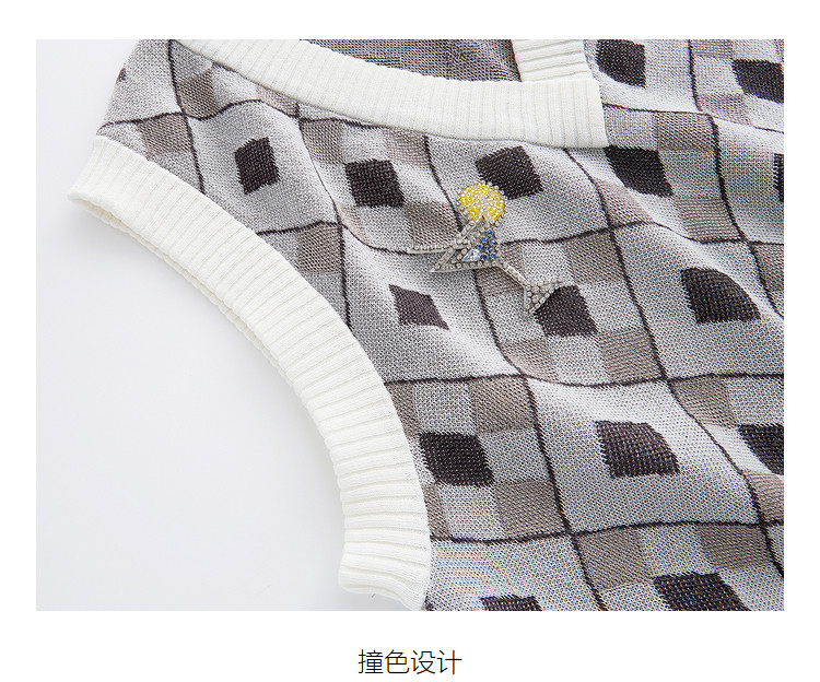 地素 针织衫 夏秋季专柜 女V领复古菱格图案马甲 189835
