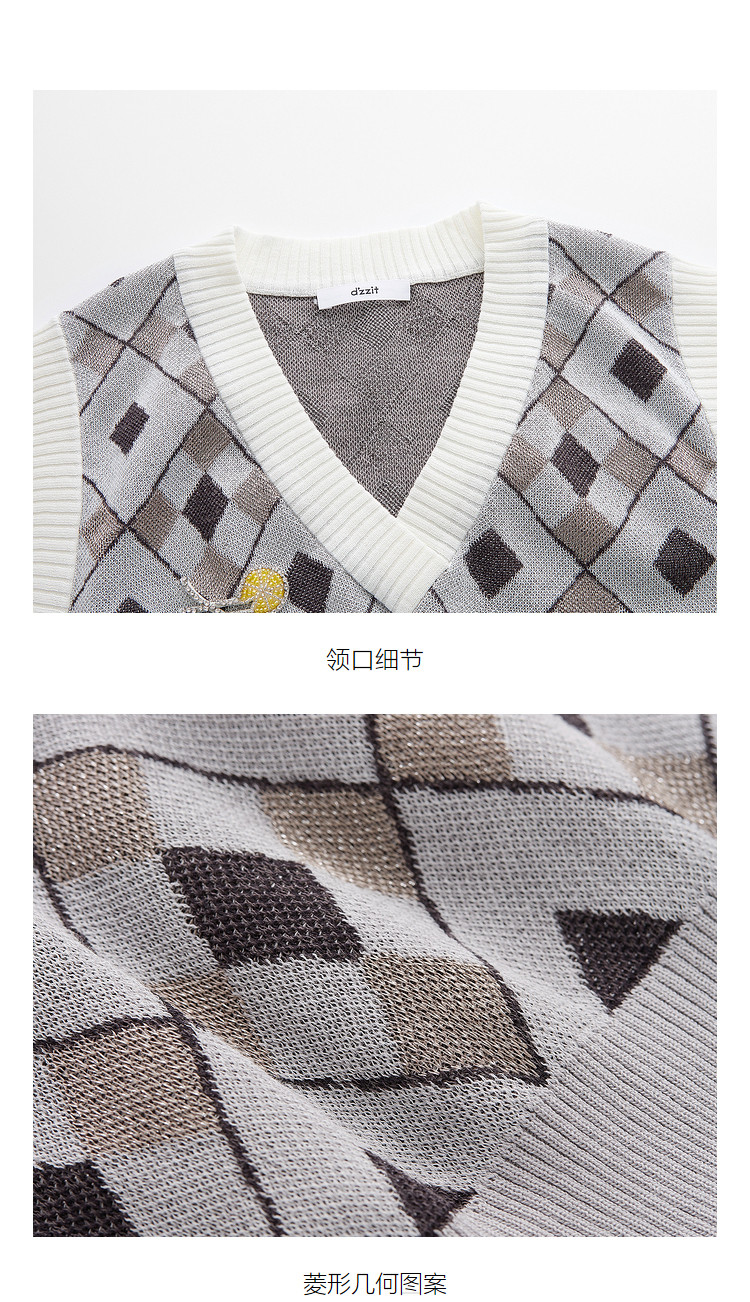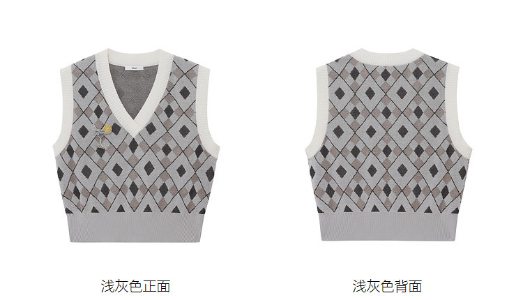 商品名称:地素 针织衫 夏秋季专柜 女V领复古菱格图案马甲 189835