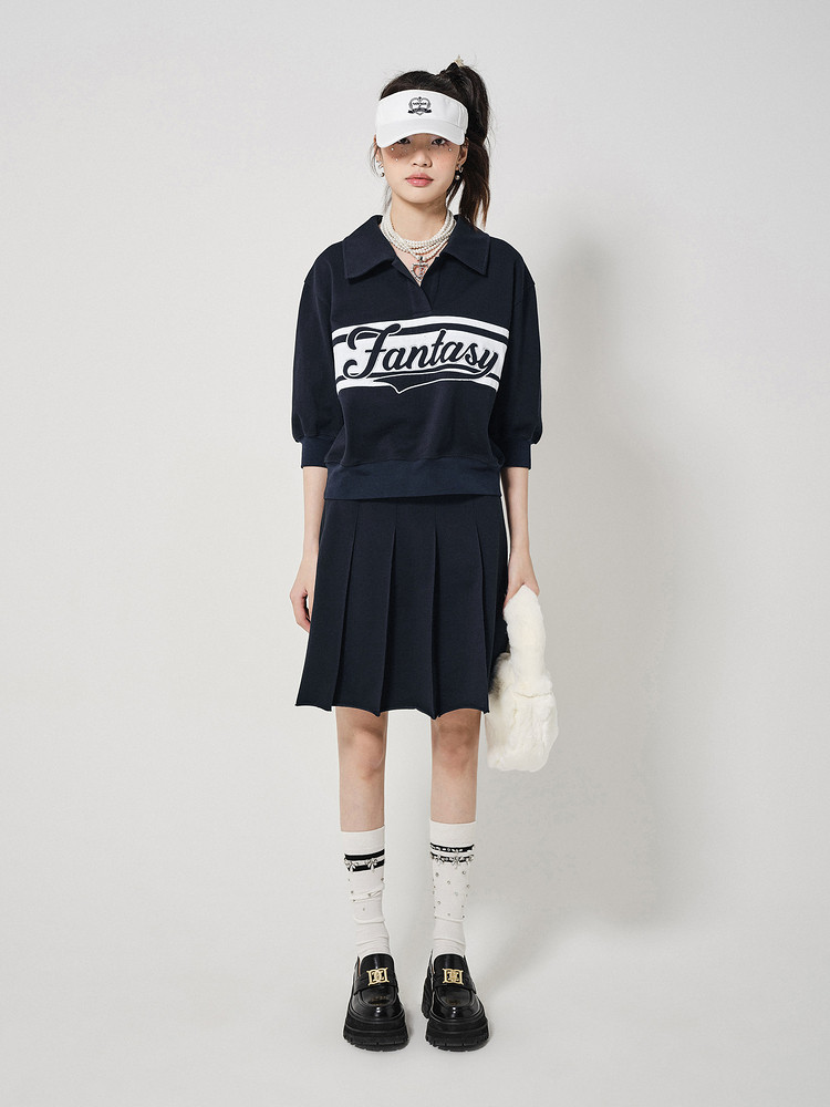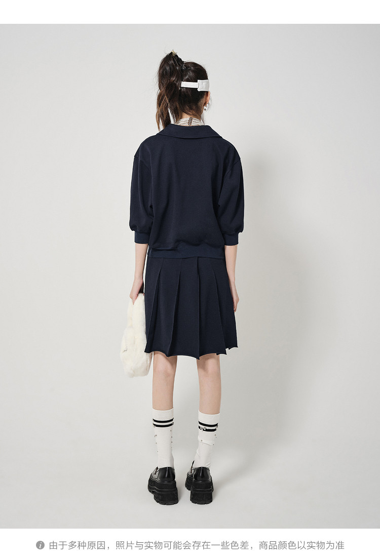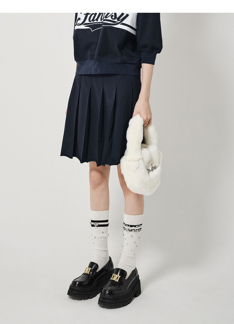 商品名称:地素半身裙 春秋季专柜卫衣中裙元气少女百褶裙 857419