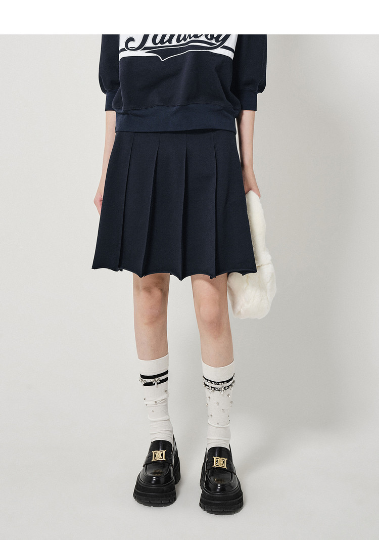 地素半身裙 春秋季专柜卫衣中裙元气少女百褶裙 857419