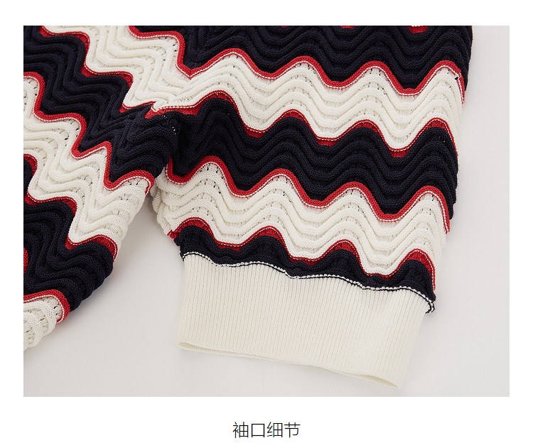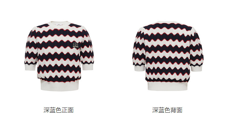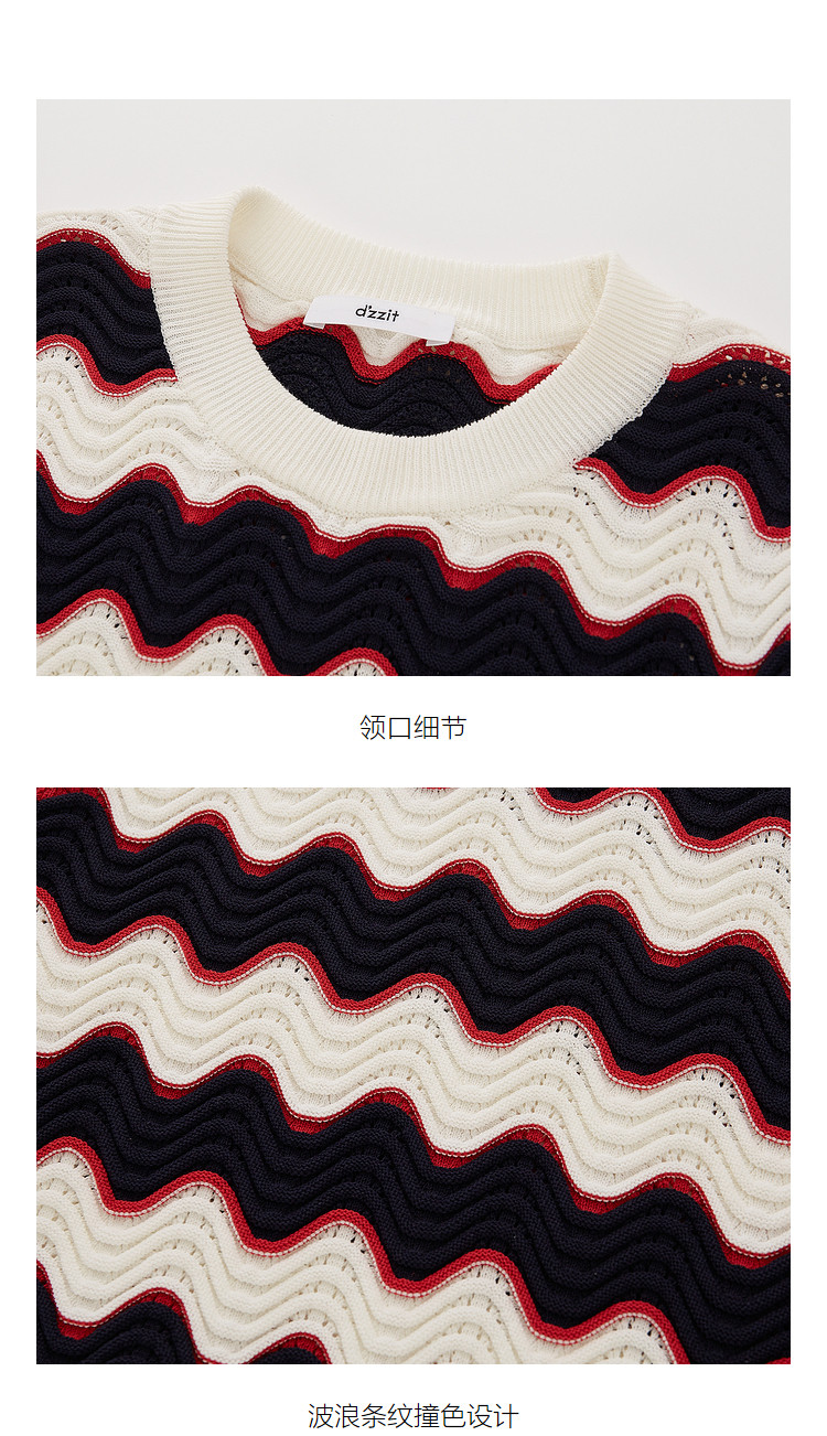 商品名称:地素夏秋法式复古波浪条纹撞色设计肌理感短袖针织衫 591115