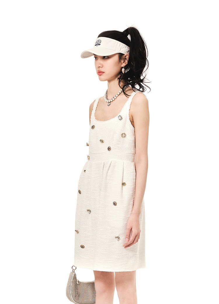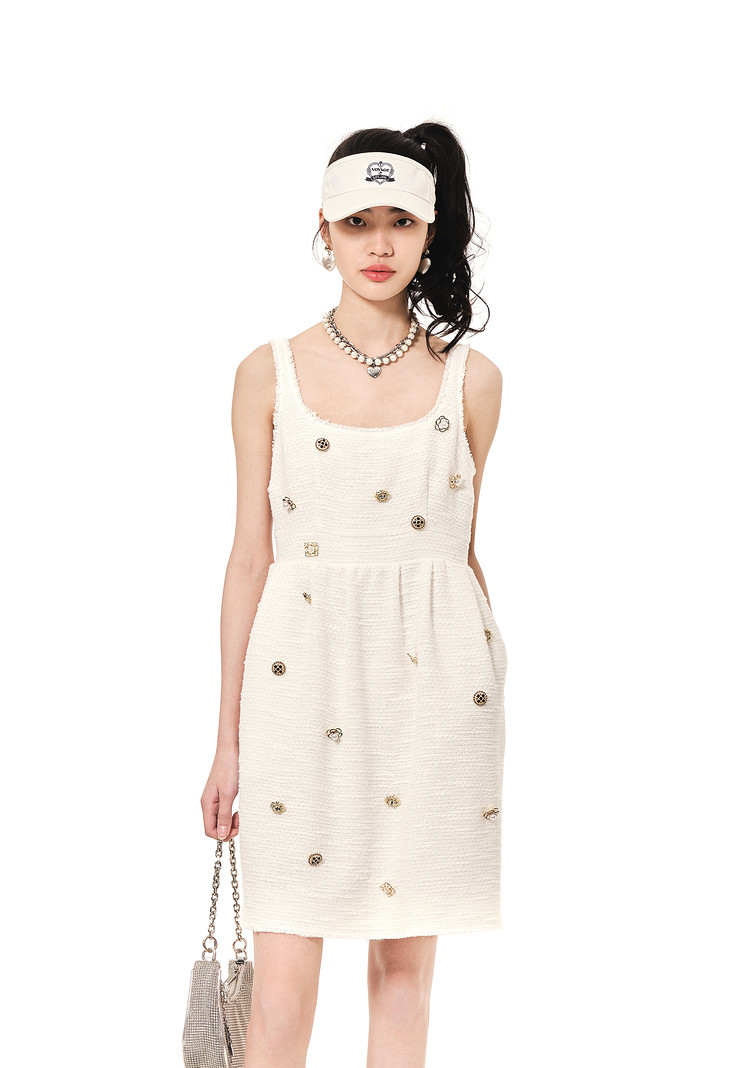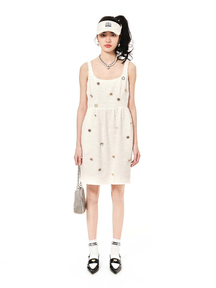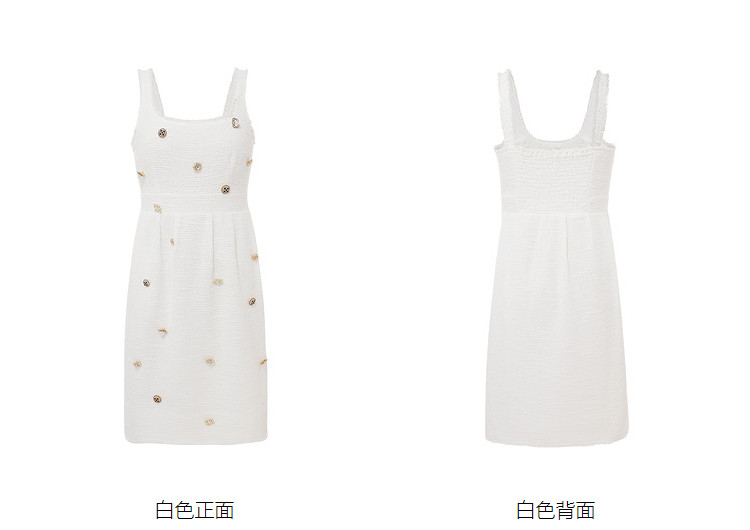 商品名称:地素连衣裙夏秋季专柜小香风徽章装饰毛边吊带裙女 580555