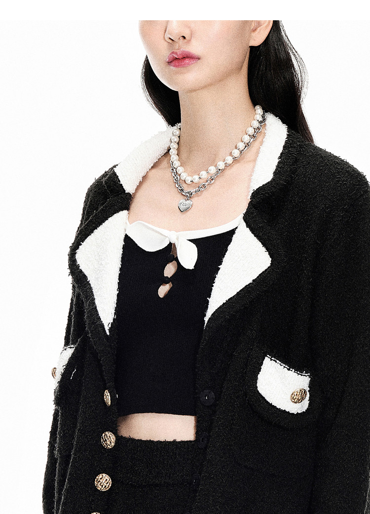 地素春秋季专柜V领长袖毛衣开衫外套上衣女 875403
