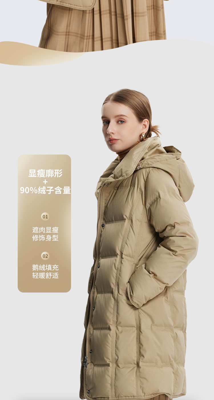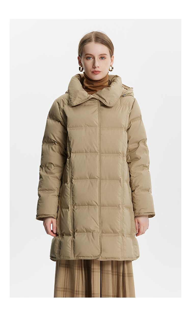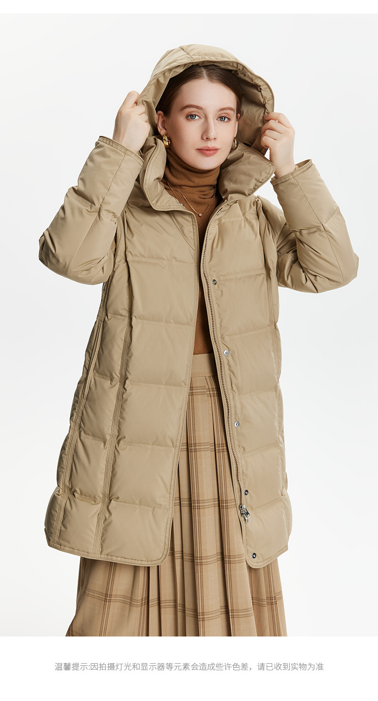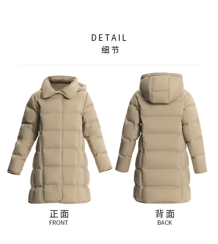 商品名称:【鹅绒莫兰迪色系】鹅绒加厚款直充压胶带帽可拆直筒中长羽绒服 444511