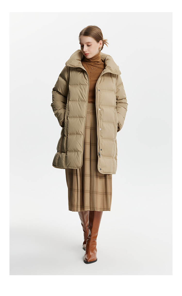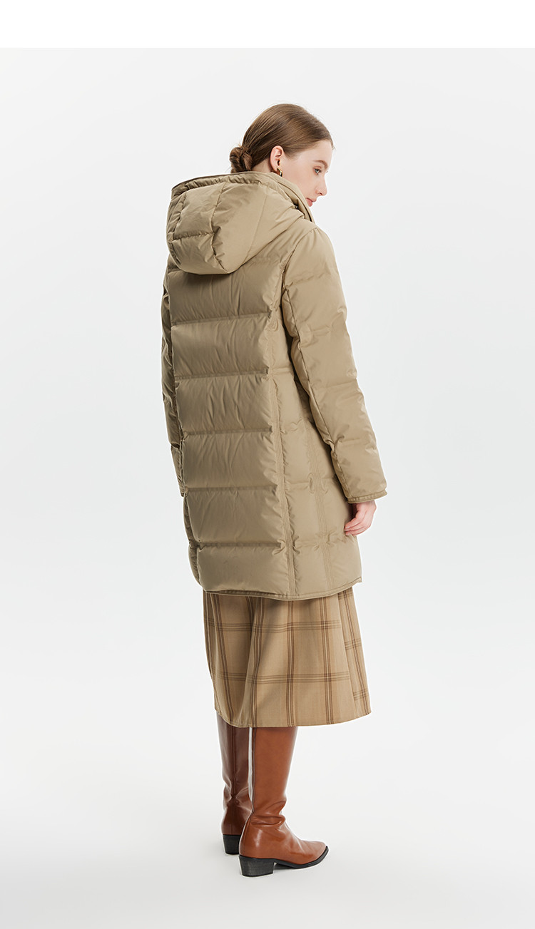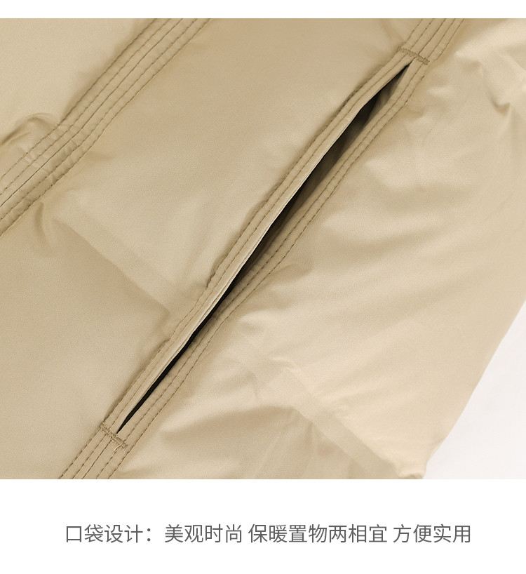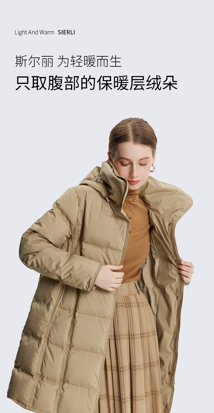 商品名称:【鹅绒莫兰迪色系】鹅绒加厚款直充压胶带帽可拆直筒中长羽绒服 444511