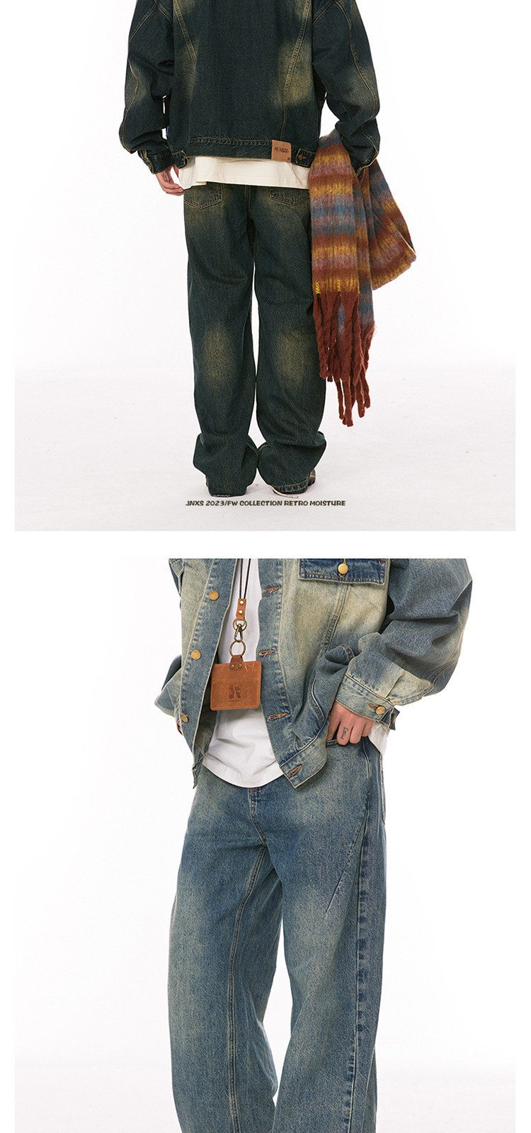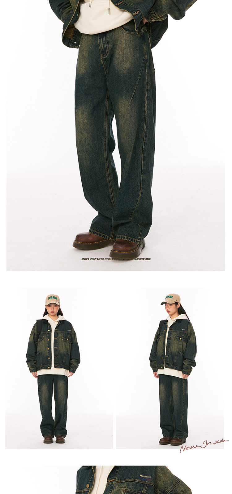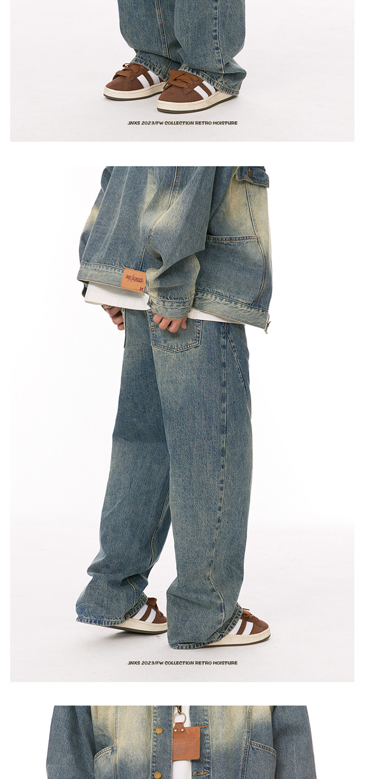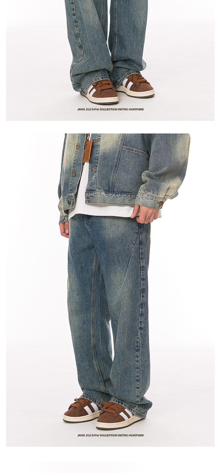商品名称:江南先生美式复古水洗宽松阔腿牛仔裤男女春季潮牌情侣休闲裤 868369