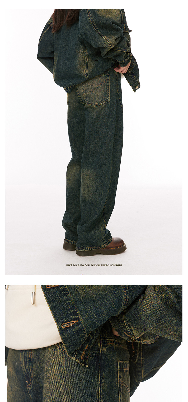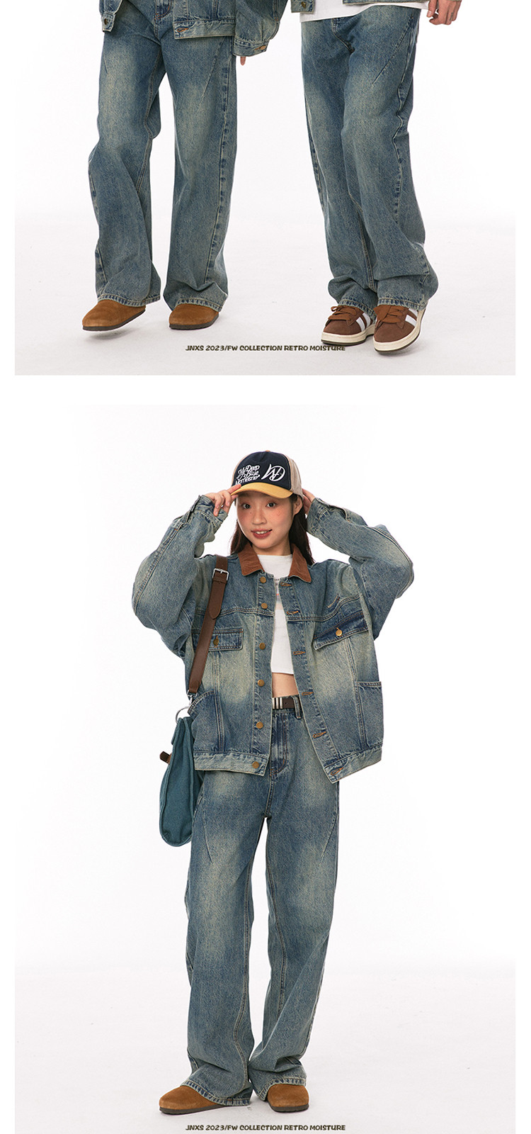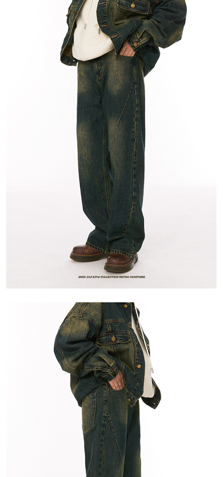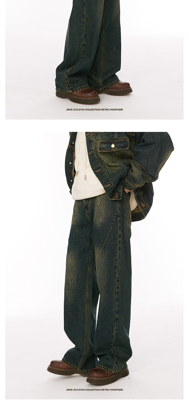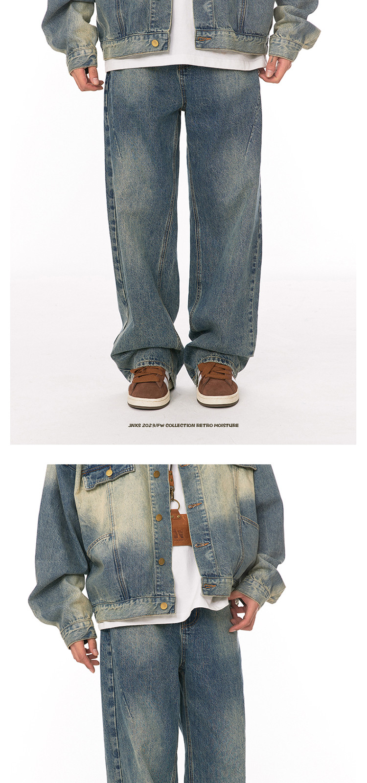 商品名称:江南先生美式复古水洗宽松阔腿牛仔裤男女春季潮牌情侣休闲裤 868369