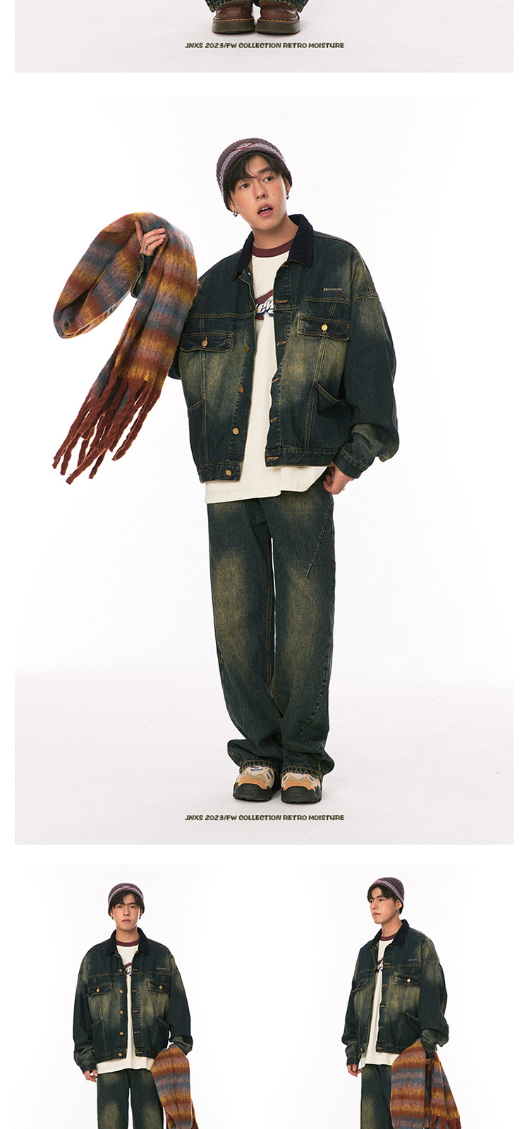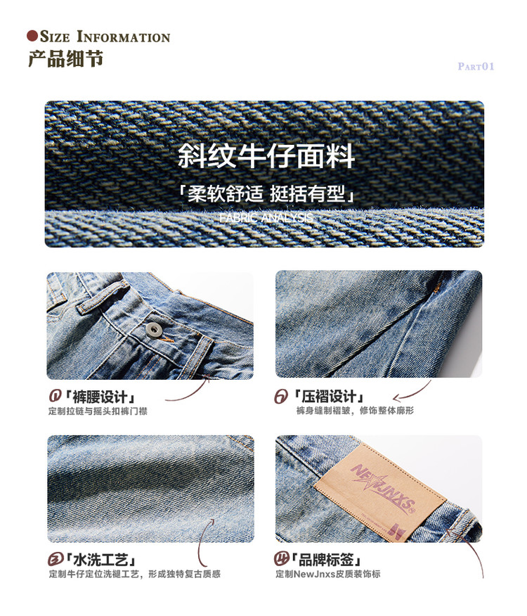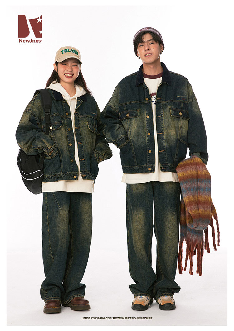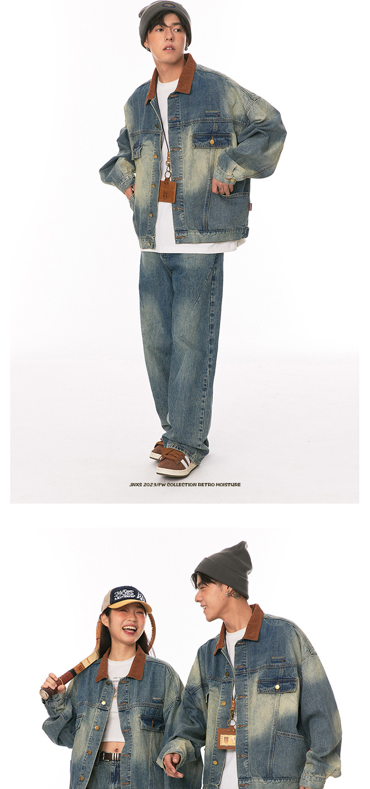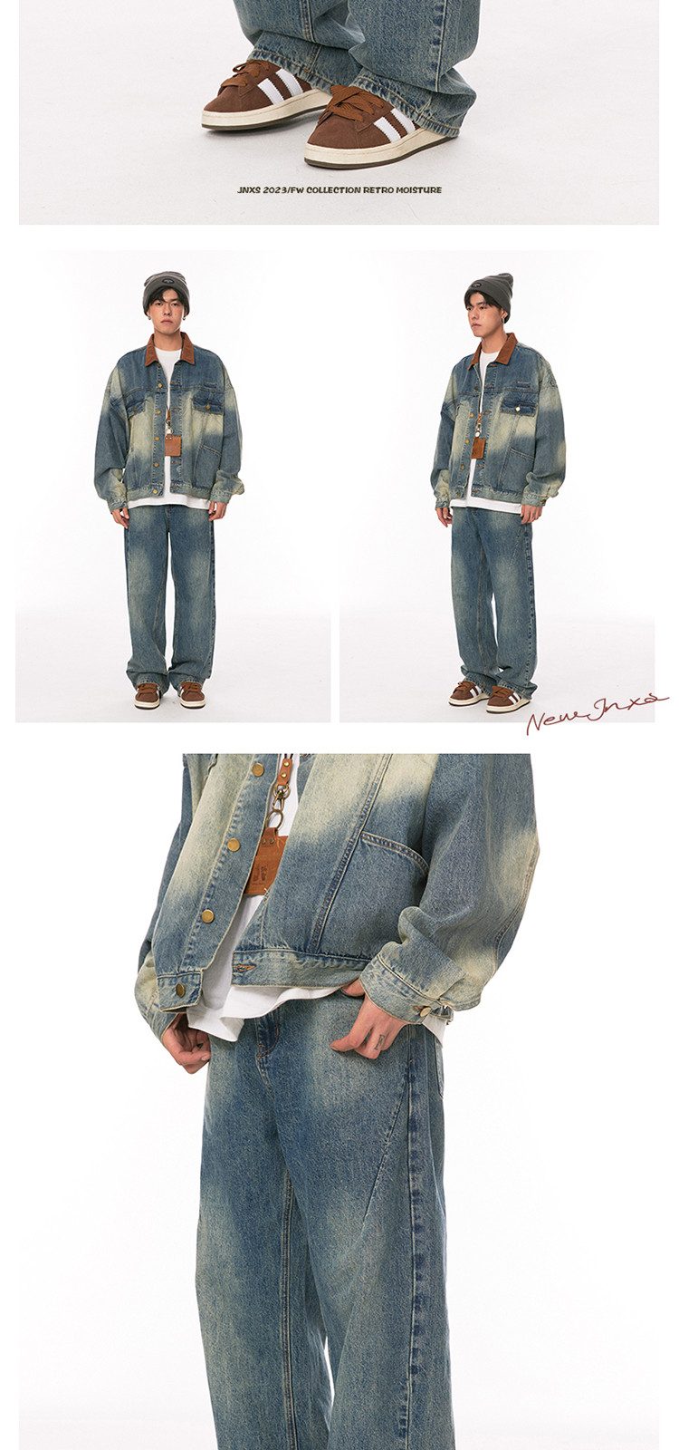 商品名称:江南先生美式复古水洗宽松阔腿牛仔裤男女春季潮牌情侣休闲裤 868369