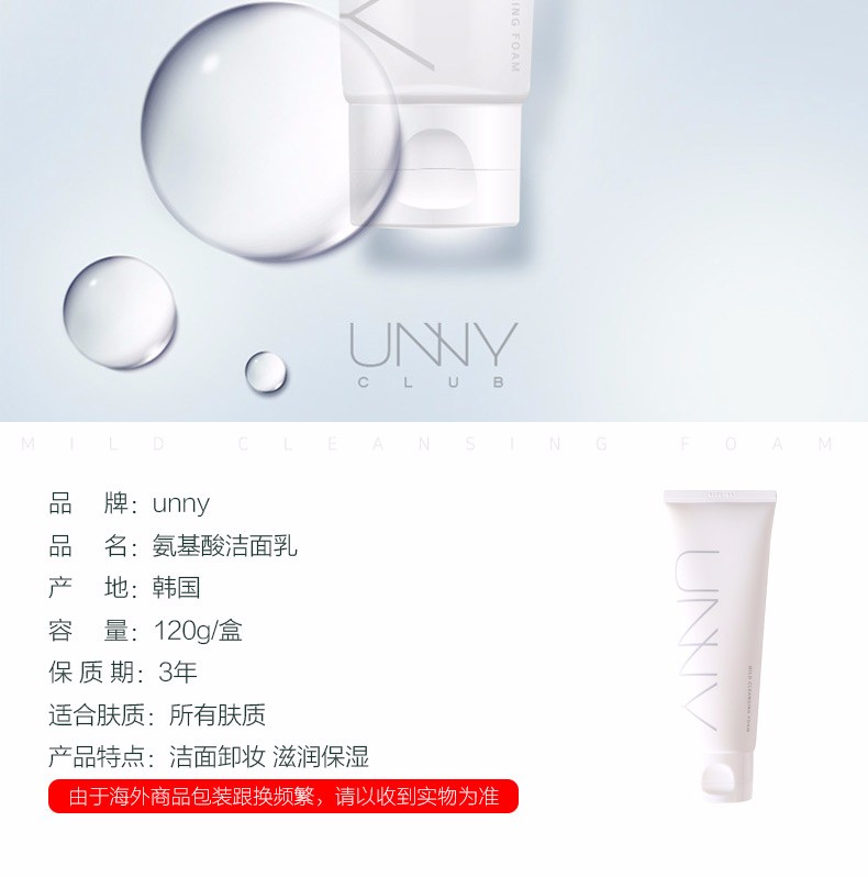 商品名称:UNNY 氨基酸洗面奶 悠宜洗面奶 120ML