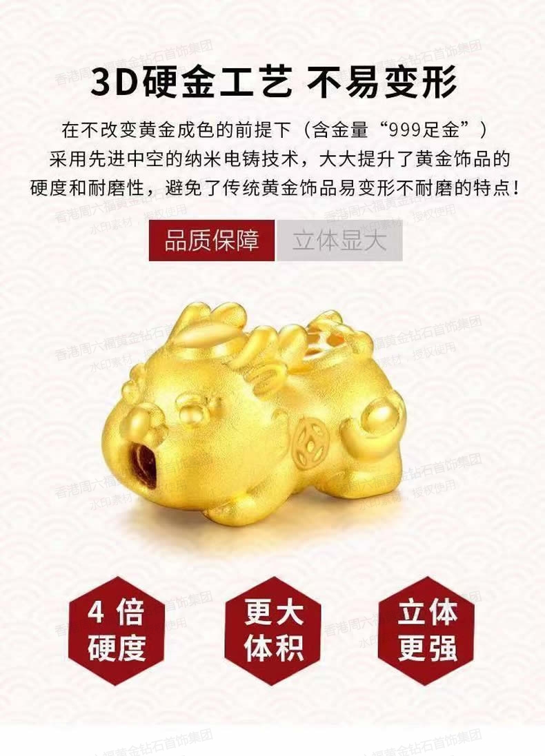 材质:足金内镶3D模型 吊坠尺寸约:22.9mm/16.4mm/17.mm
