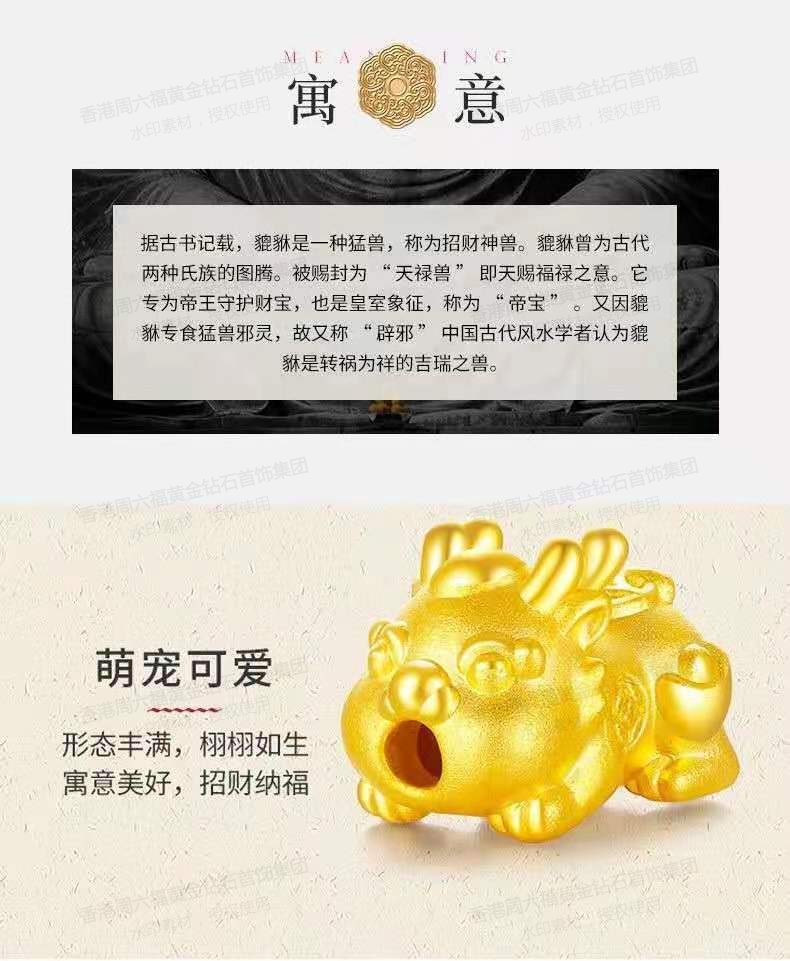 商品名称:香港周六福足金系列吊坠-貔貅宝宝(足金含量:约0.15克)【赠】钛金项链450mm
