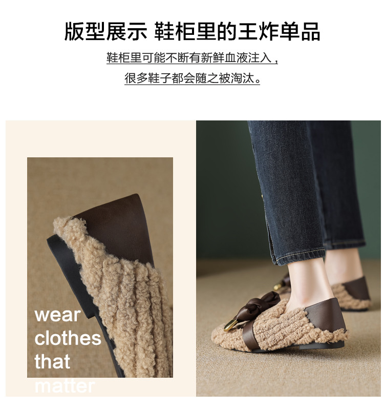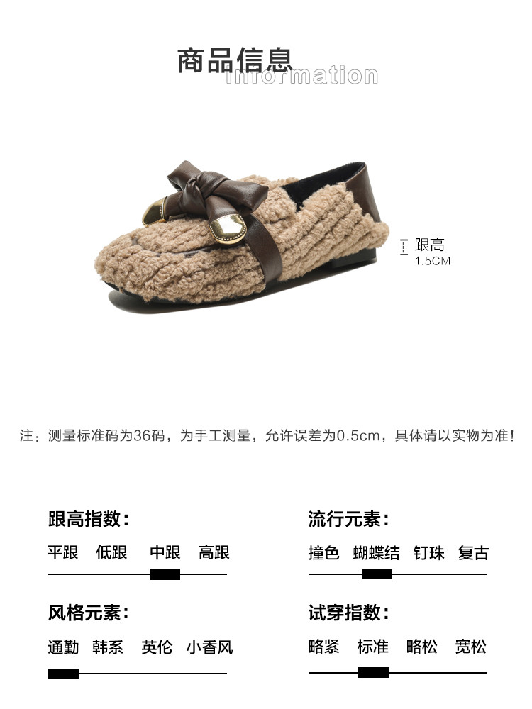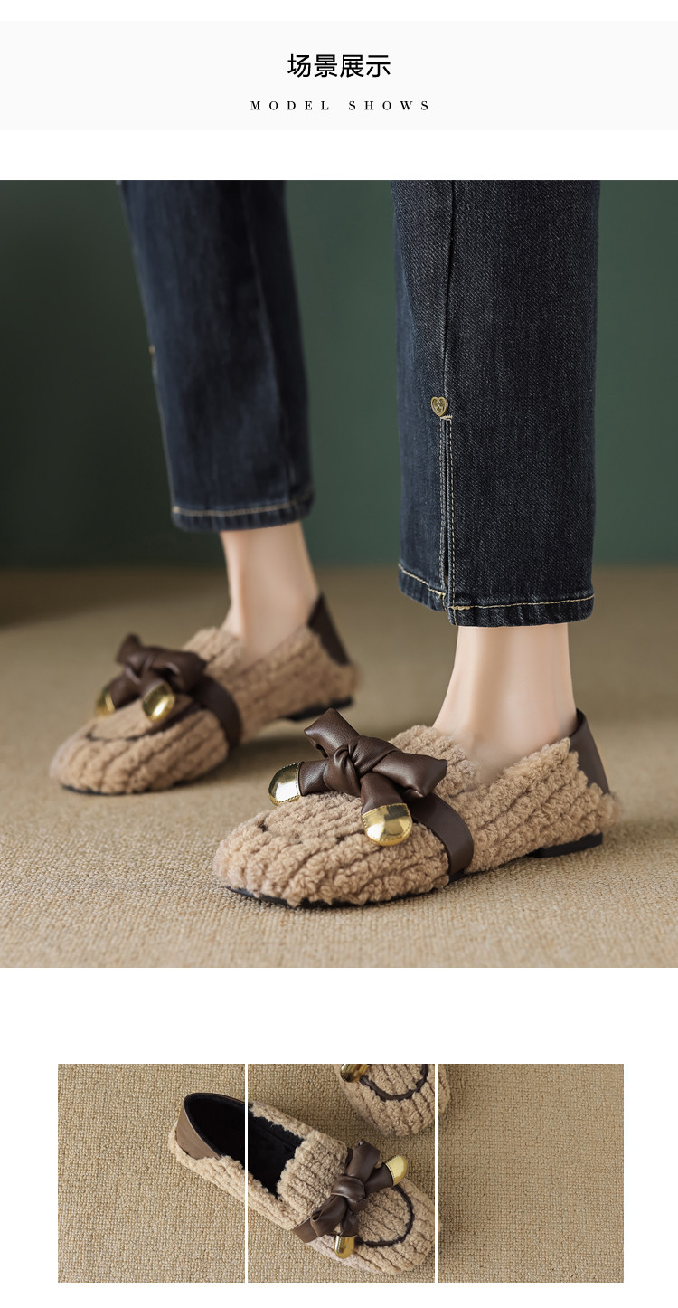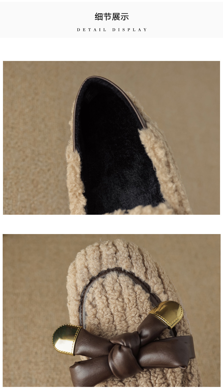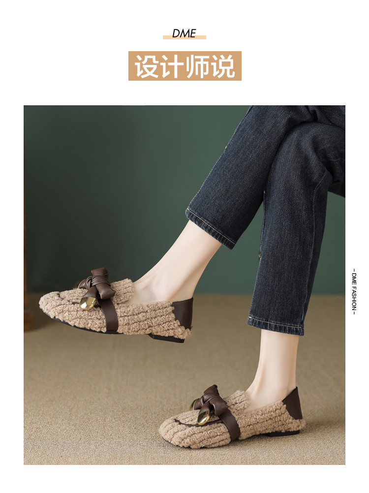 商品名称:春美拉德色系毛毛鞋女外穿棉单鞋时尚蝴蝶结平底鞋 065793