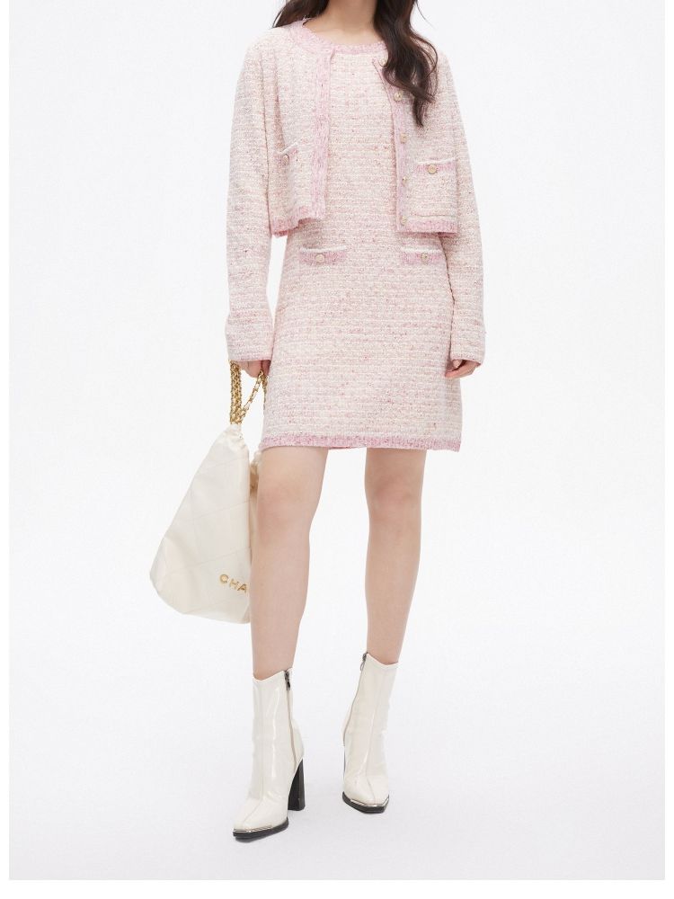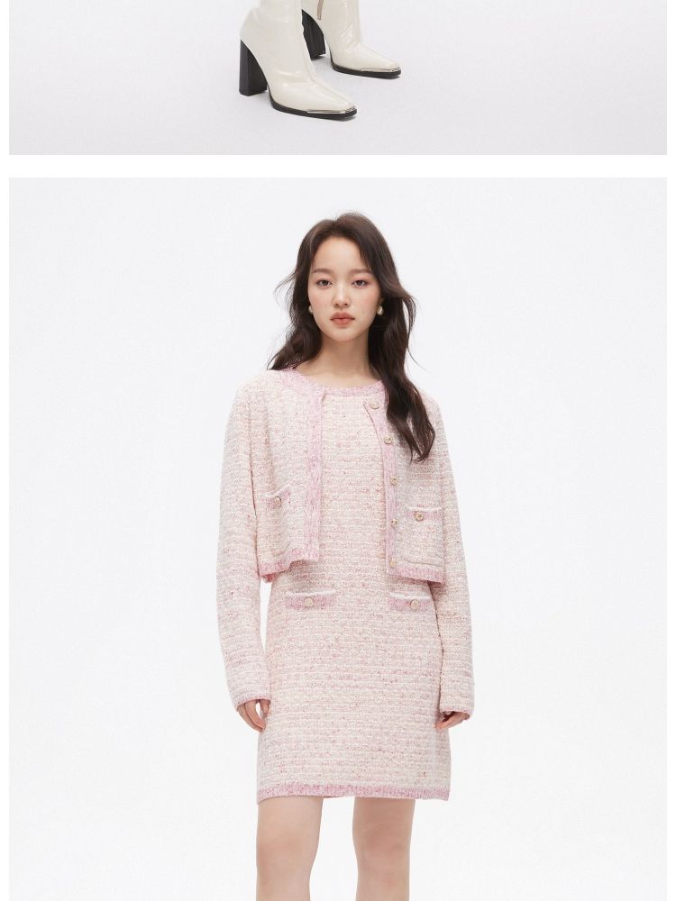 【短款套装】夏季时尚通勤装饰口袋针织连衣裙女 590618