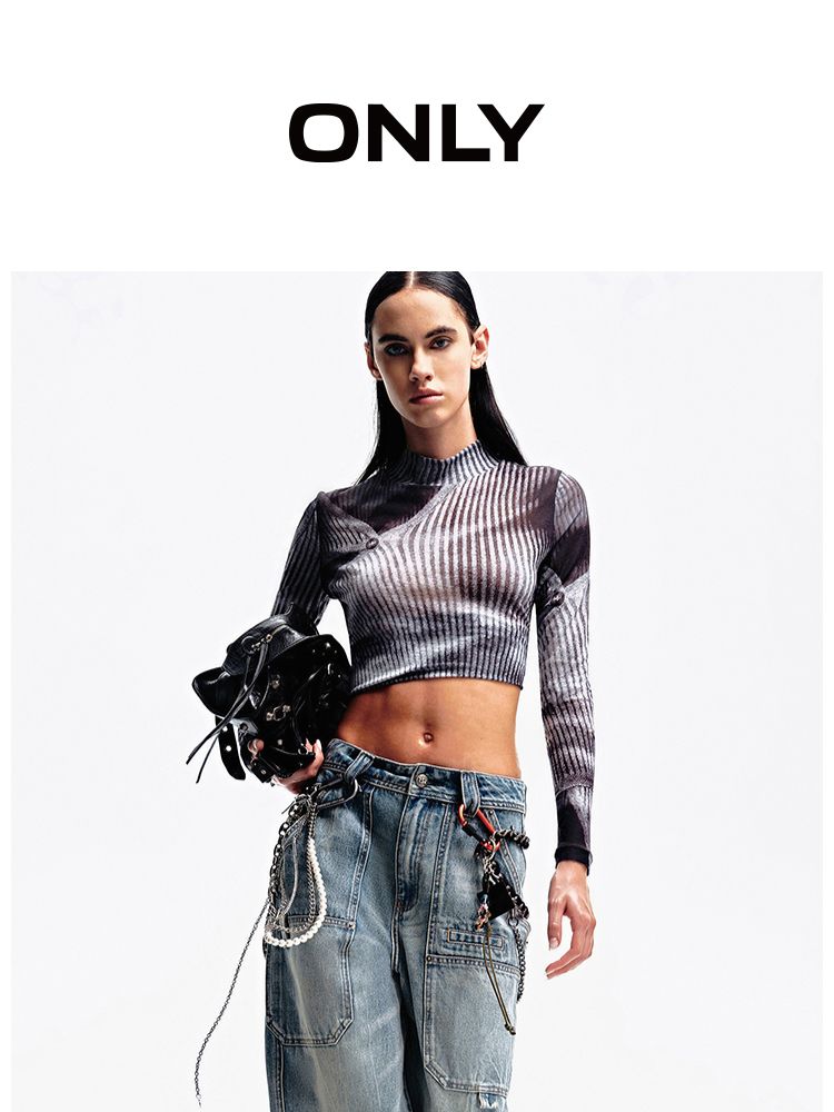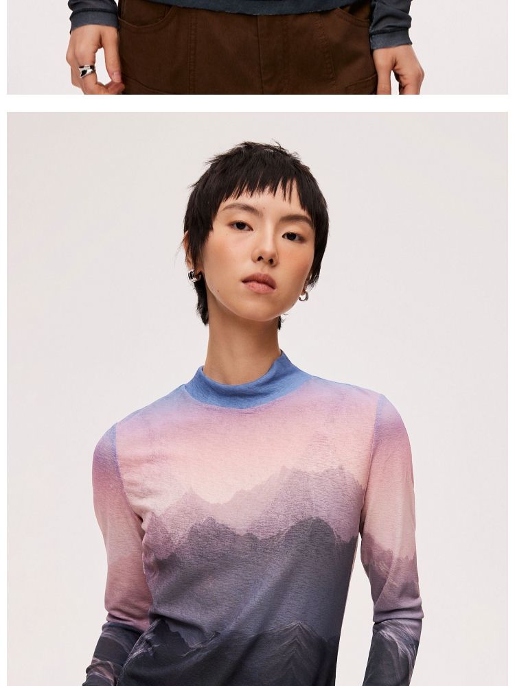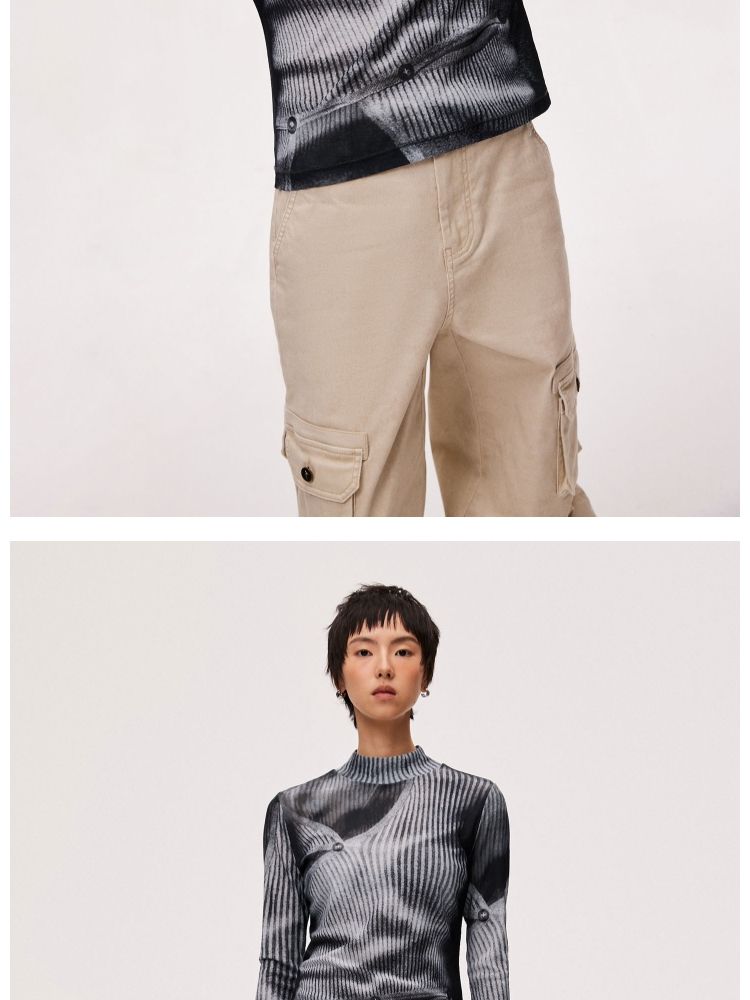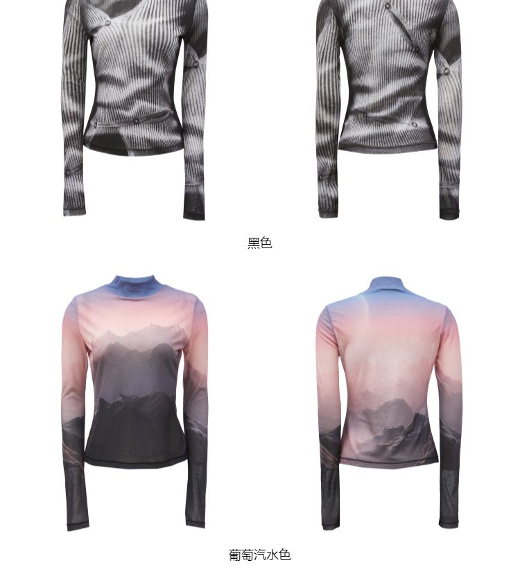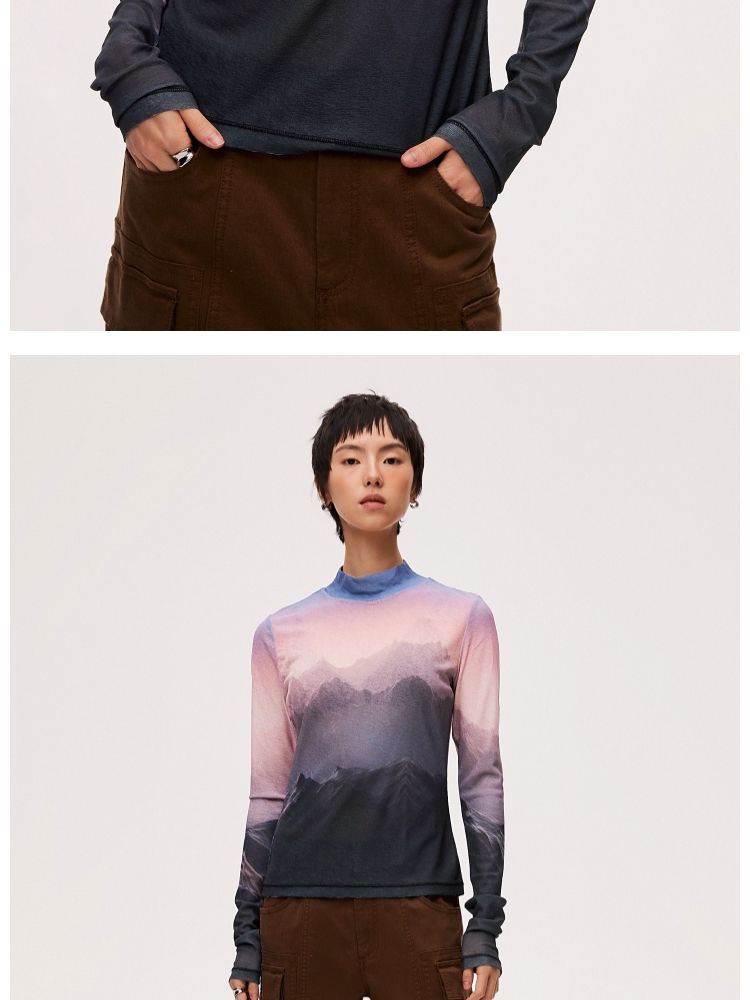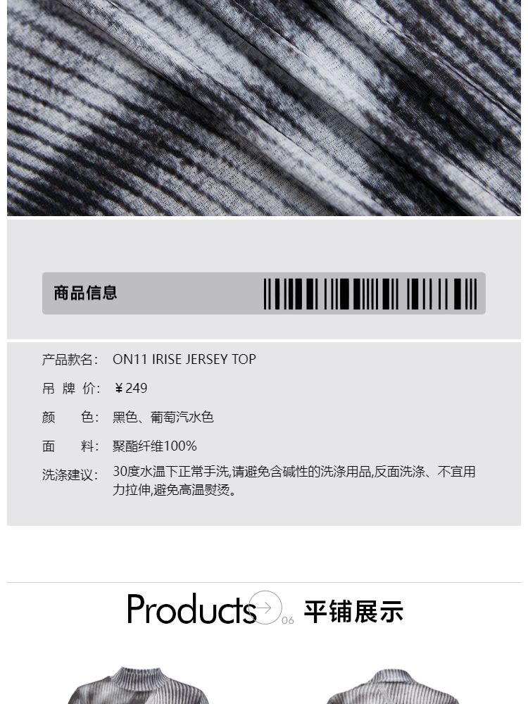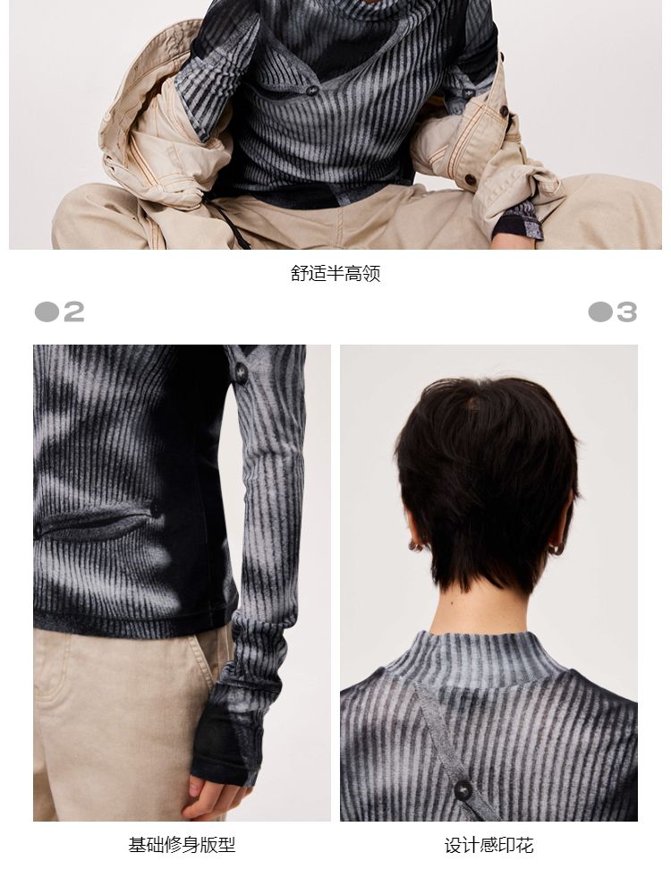 商品名称:【潮流休闲】夏季休闲设计感印花半高领修身T恤女 259034
