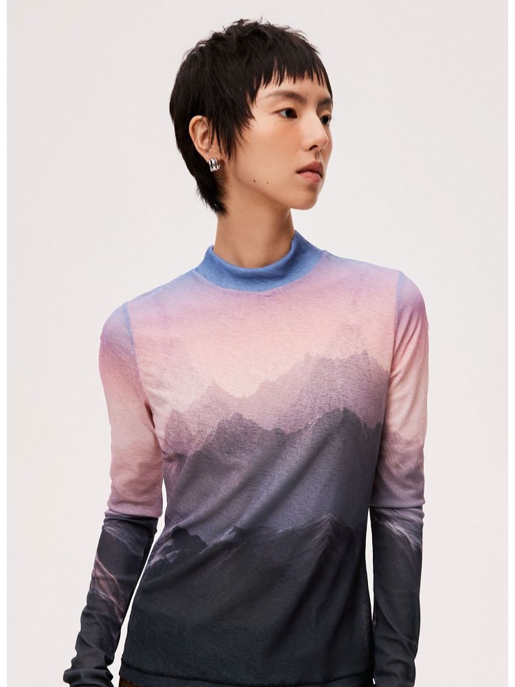 【潮流休闲】夏季休闲设计感印花半高领修身T恤女 259034