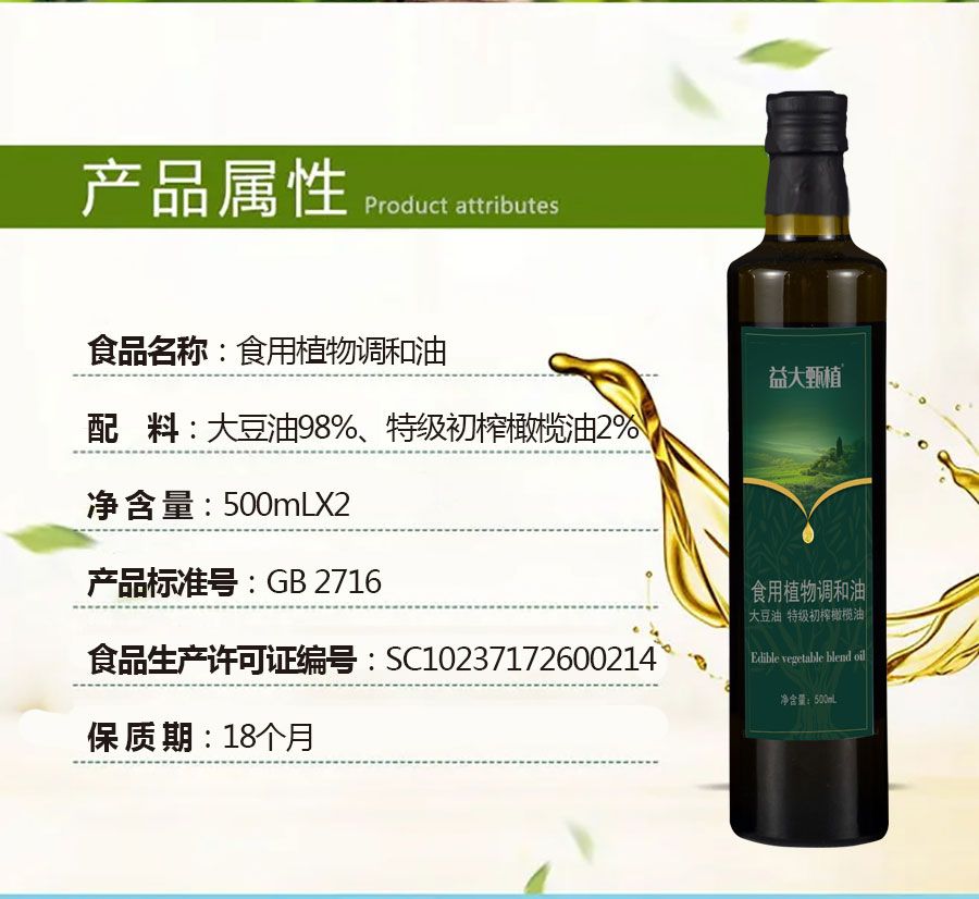 商品名称:益大甄植 橄榄调和油500mLx2