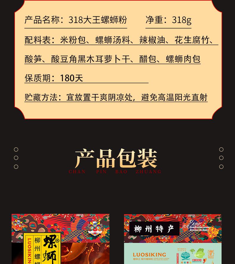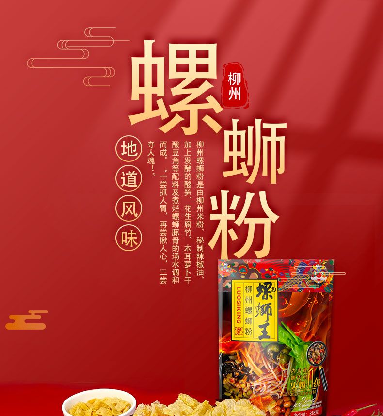 商品名称:螺蛳王 318克袋装螺蛳粉大王原味 5袋装