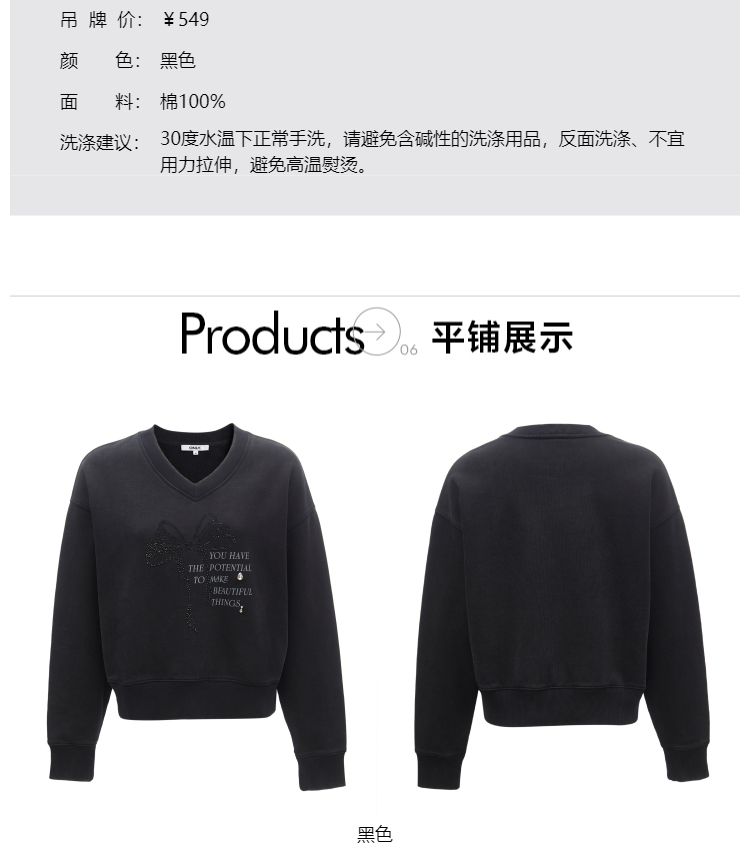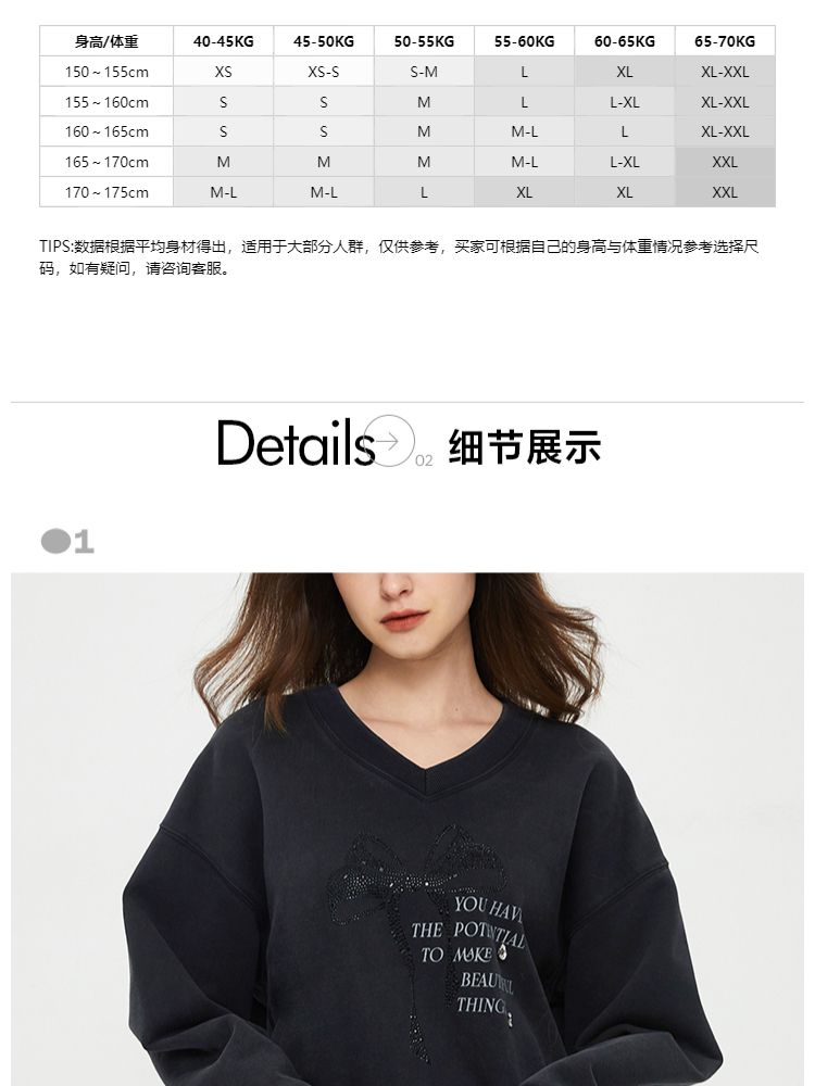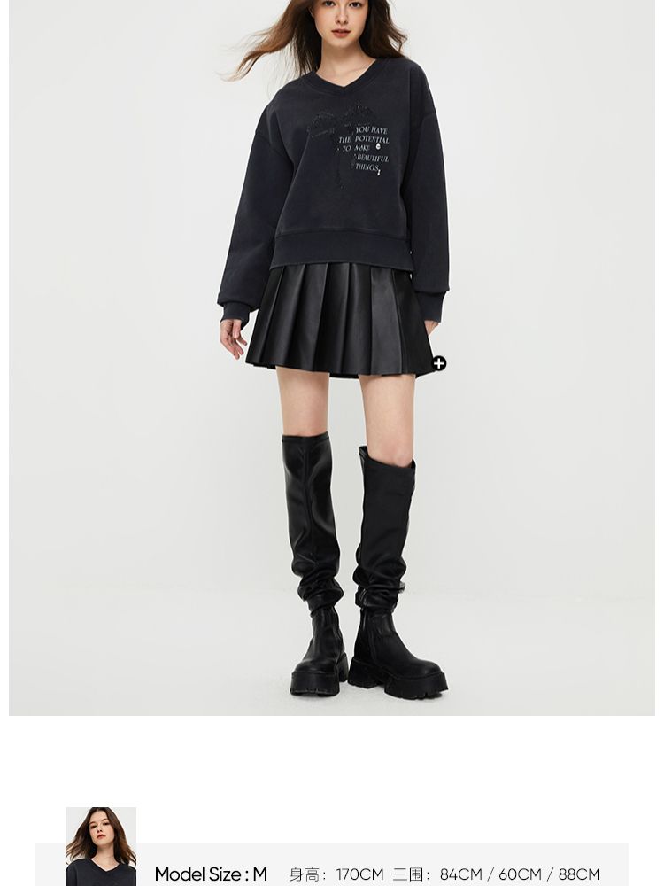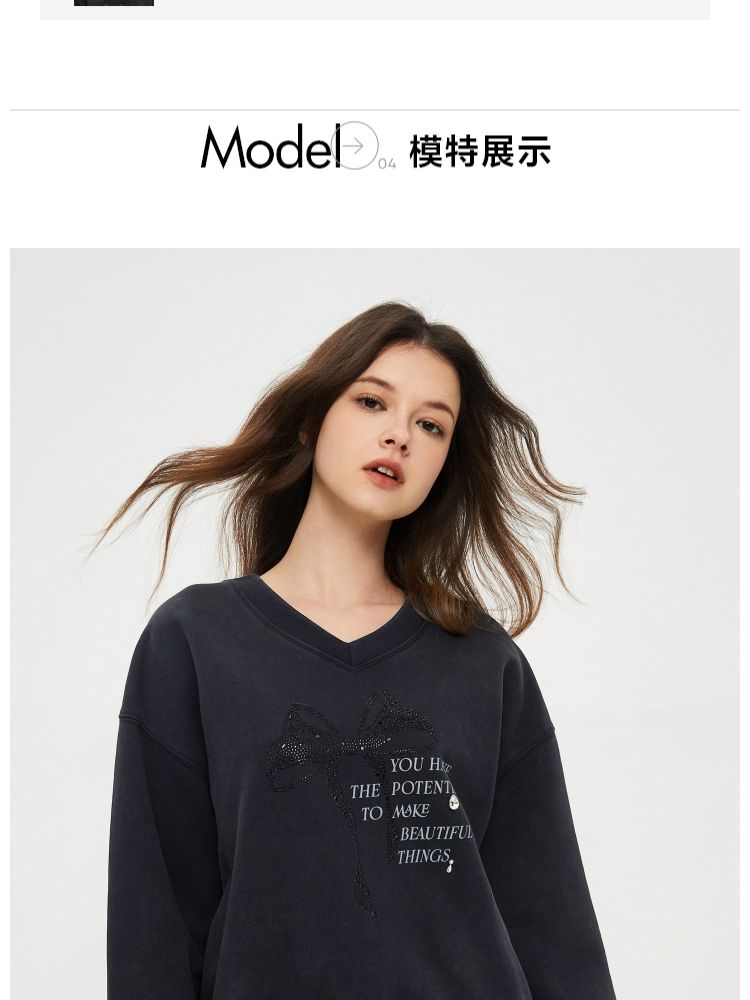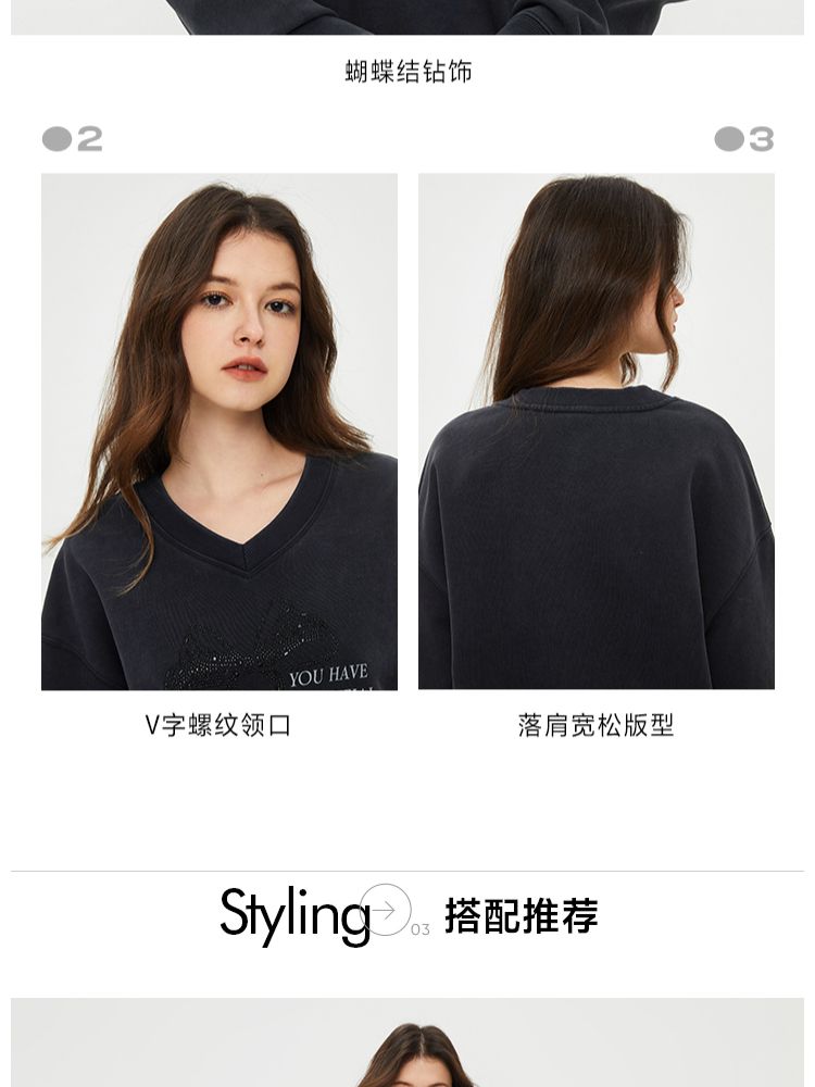商品名称:【时尚百搭】春季潮流休闲百搭V字领落肩宽松卫衣女 825882