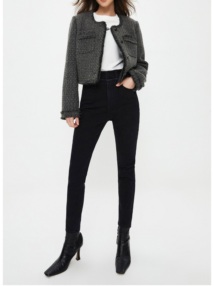商品名称:【个性通勤】夏季通勤弹力高腰小脚裤九分牛仔裤女 213082