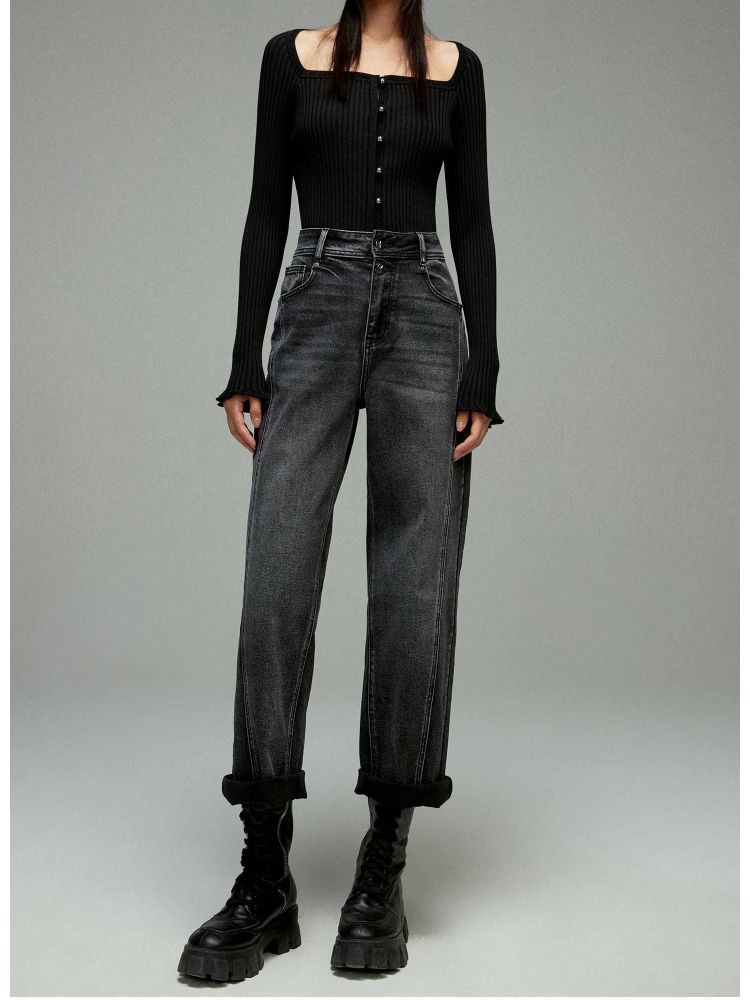 【显瘦裤线】夏季含莱赛尔两粒扣哈伦裤九分牛仔裤女 094426