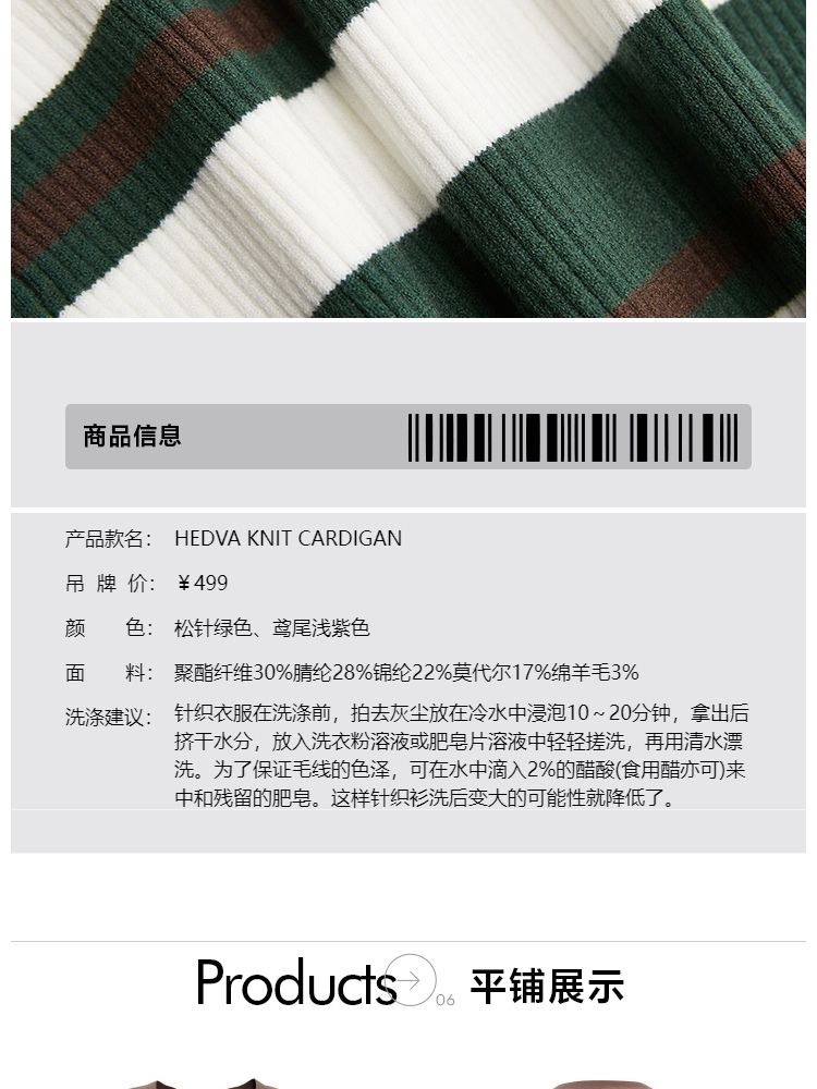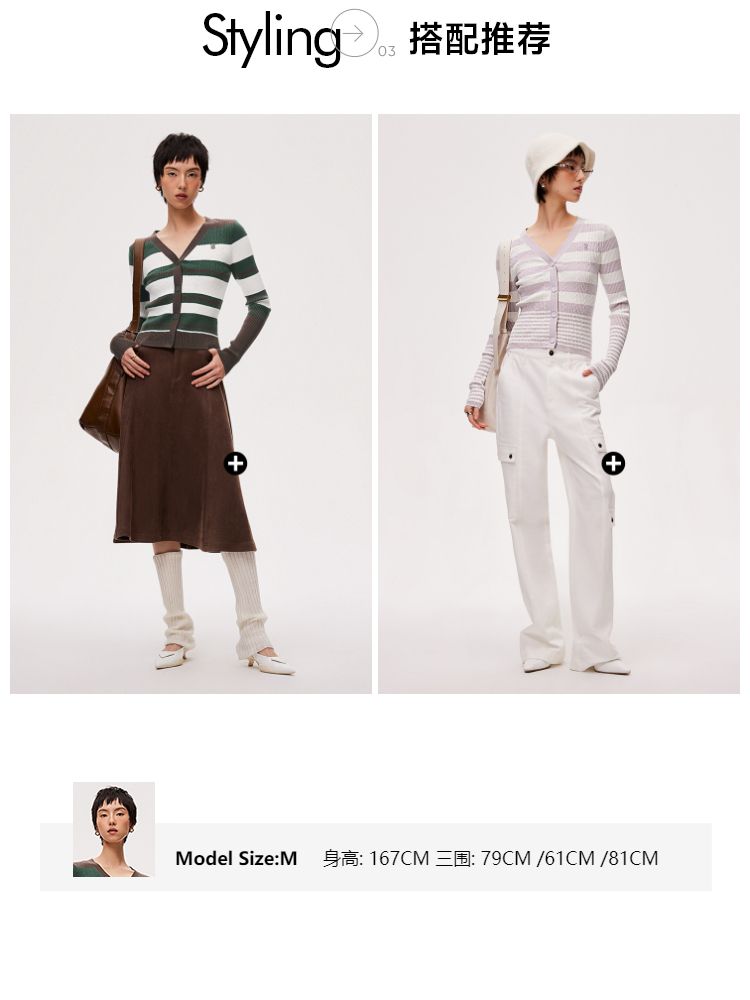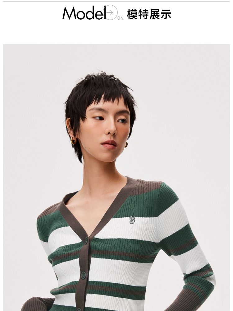 商品名称:【显瘦V领】春季潮酷休闲时尚V领条纹开衫针织衫女 593306