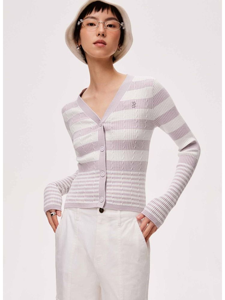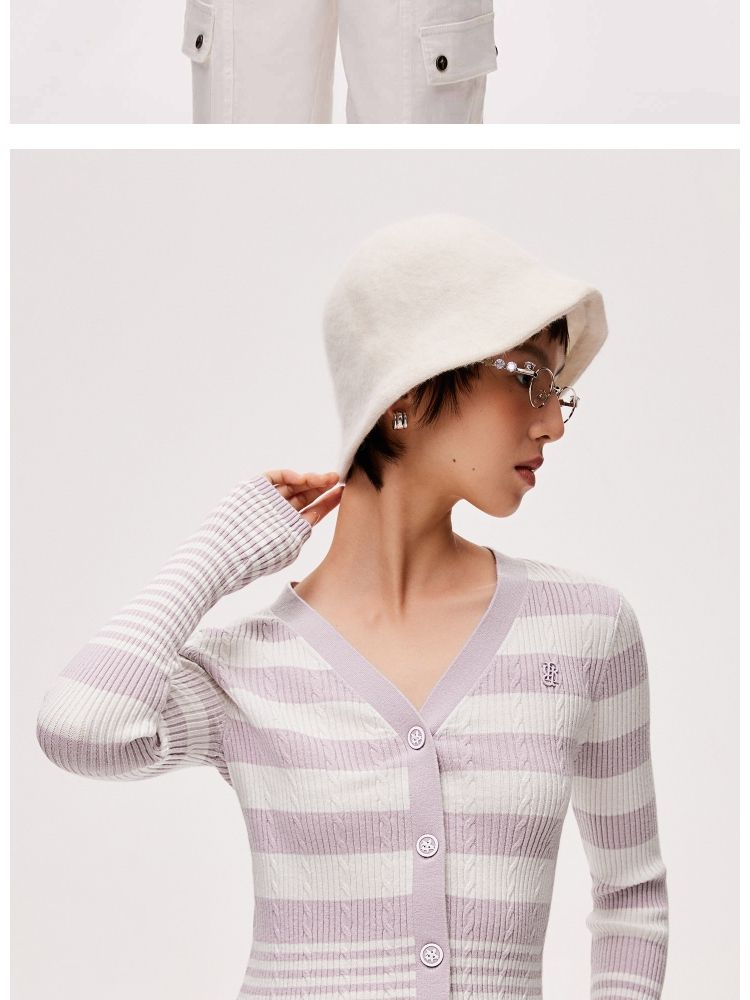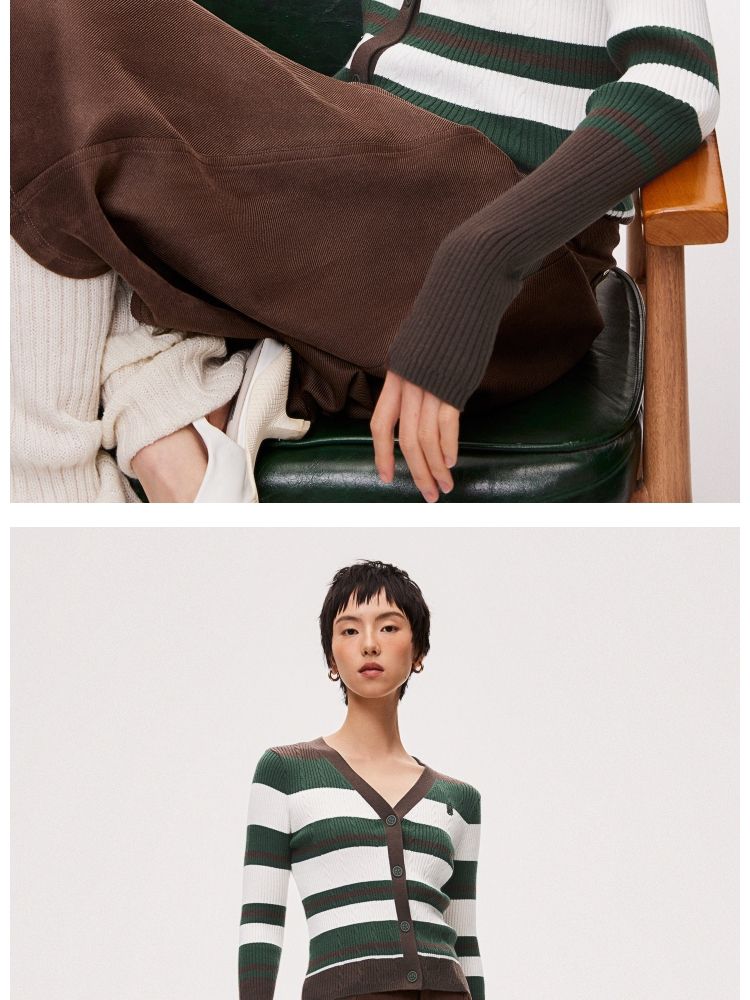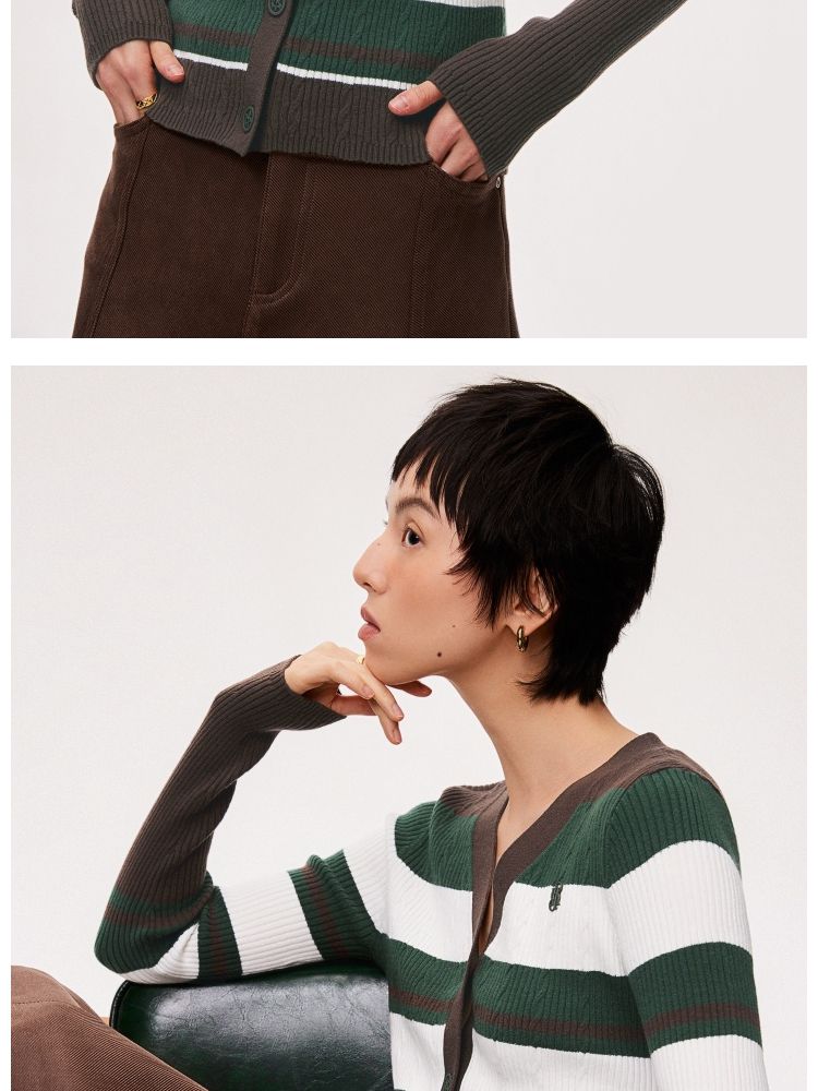 【显瘦V领】春季潮酷休闲时尚V领条纹开衫针织衫女 593306