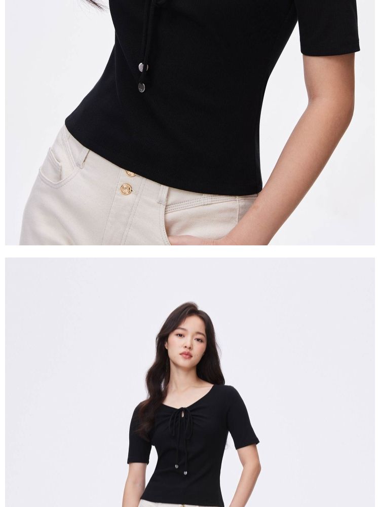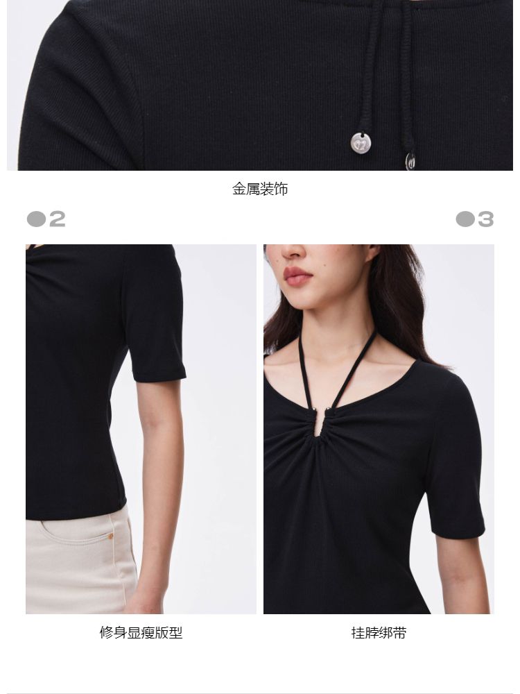商品名称:【气质淑女】年夏季百搭显瘦挂脖绑带修身T恤女 088410