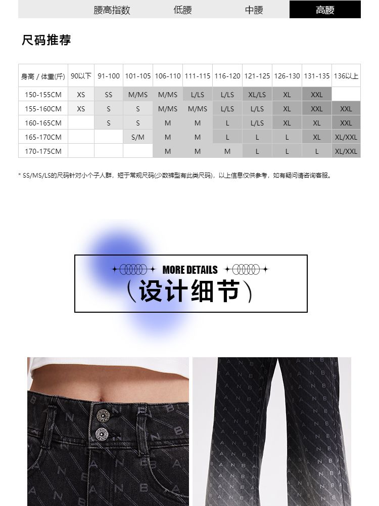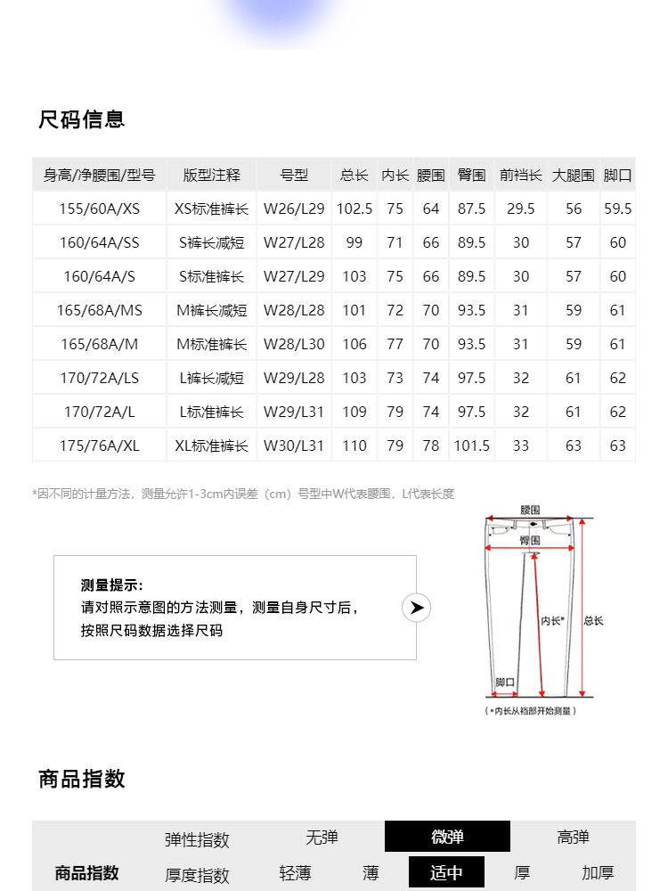 | XS(标准裤长) | / | 65 | 102.5 | 88.5 | 155/60A |