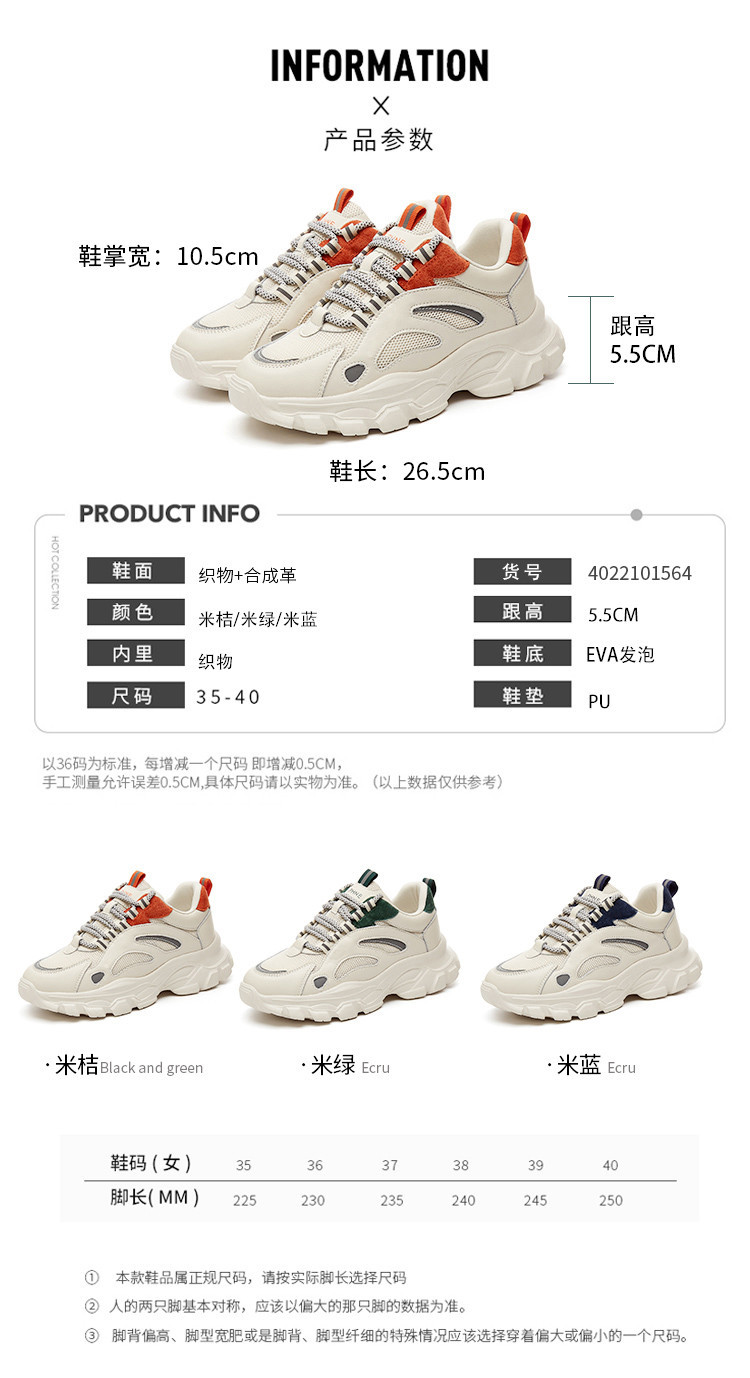 商品名称:【爆款推荐】春夏休闲鞋百搭复古老爹鞋舒适透气运动鞋女厚底鞋 384151