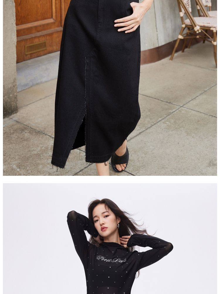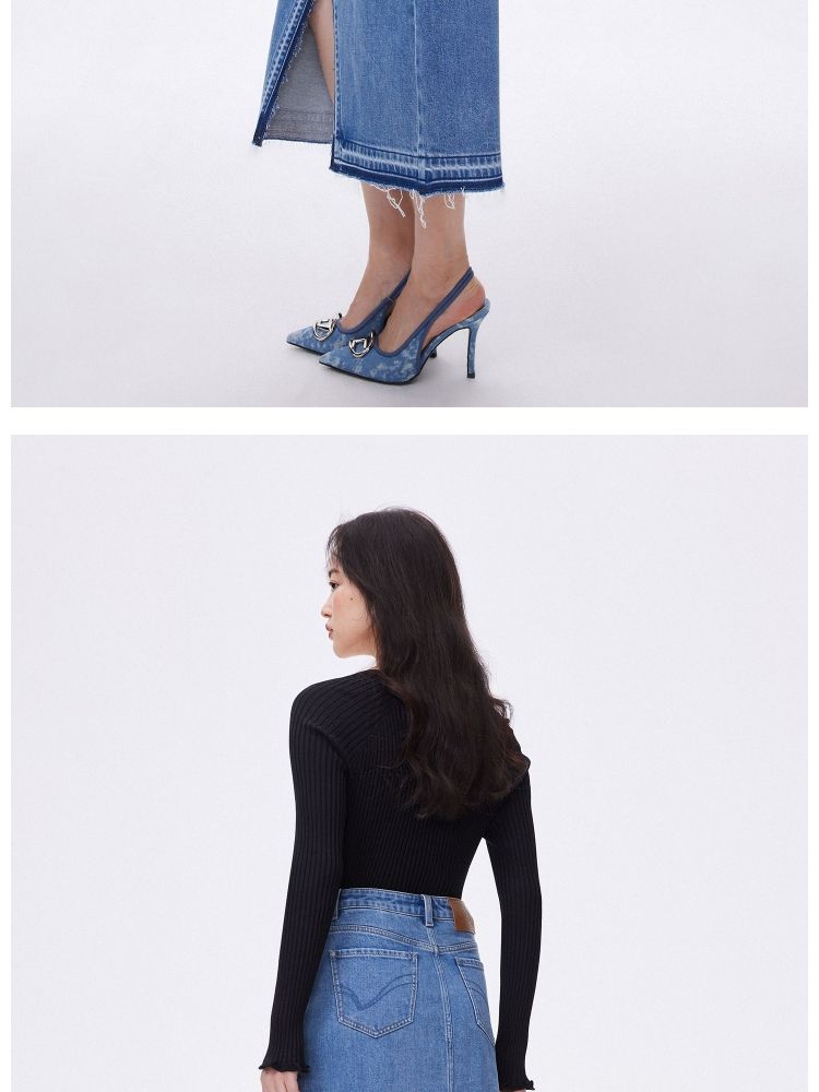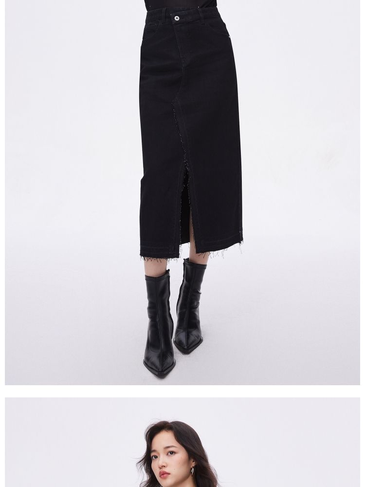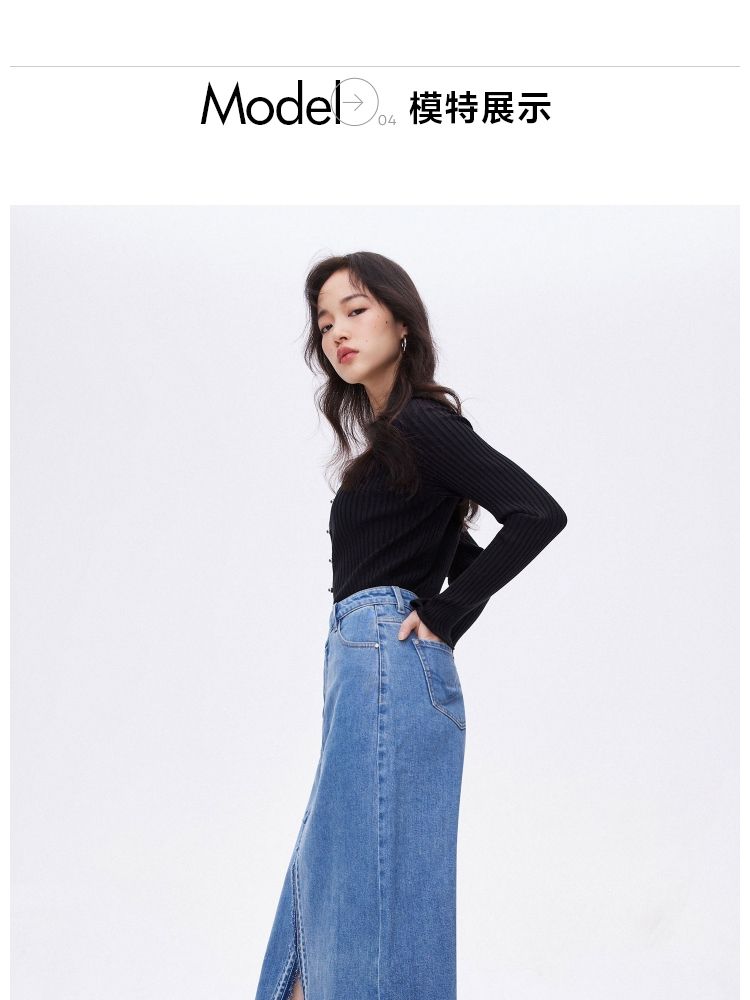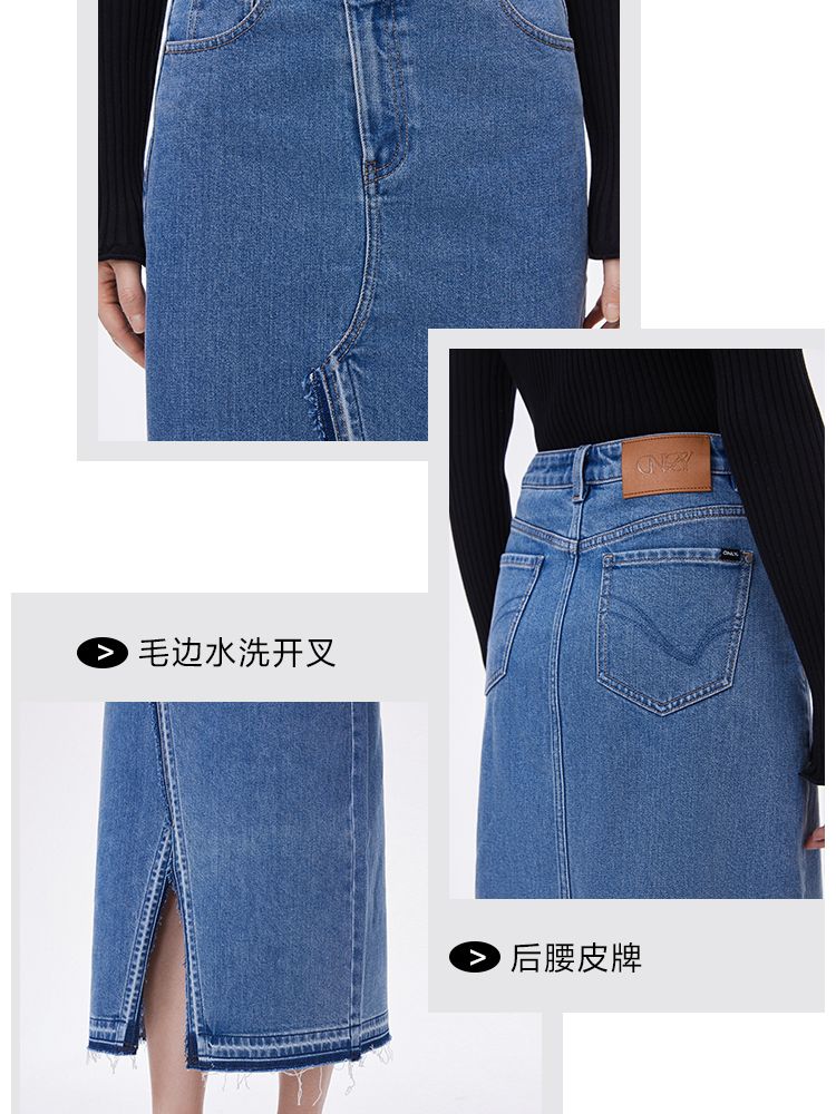 商品名称:【牛仔半裙】夏季不对称腰头开叉高腰中长款牛仔半身裙女 063962