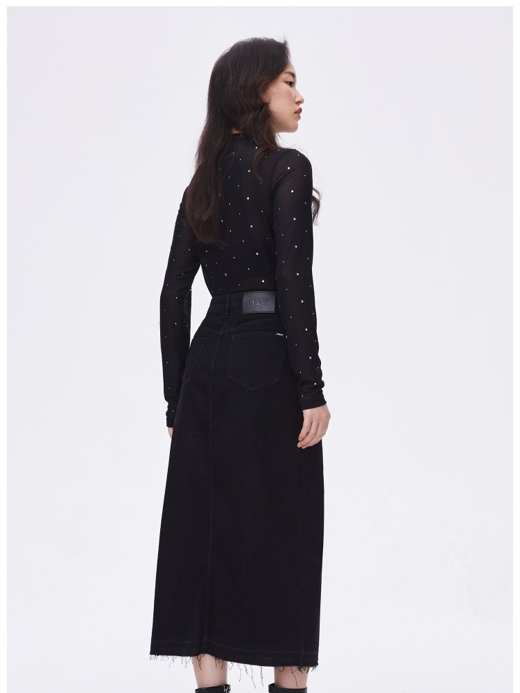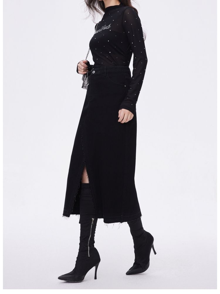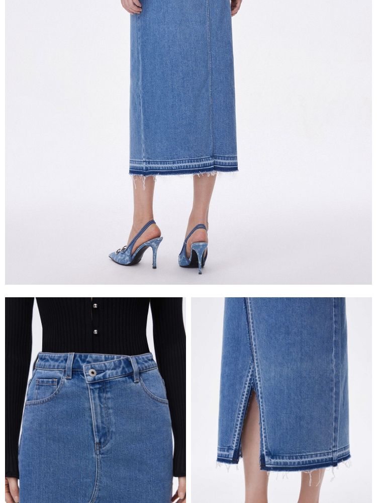 【牛仔半裙】夏季不对称腰头开叉高腰中长款牛仔半身裙女 063962