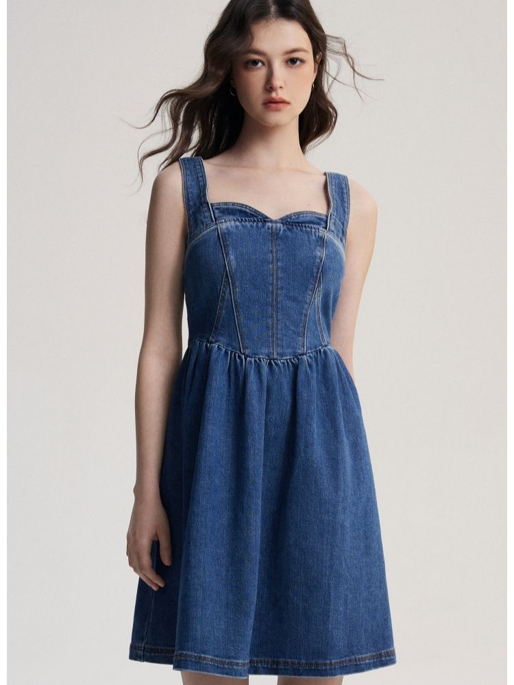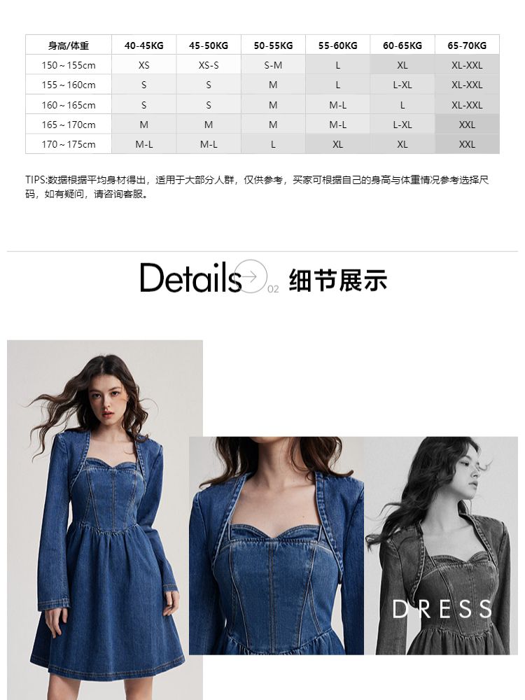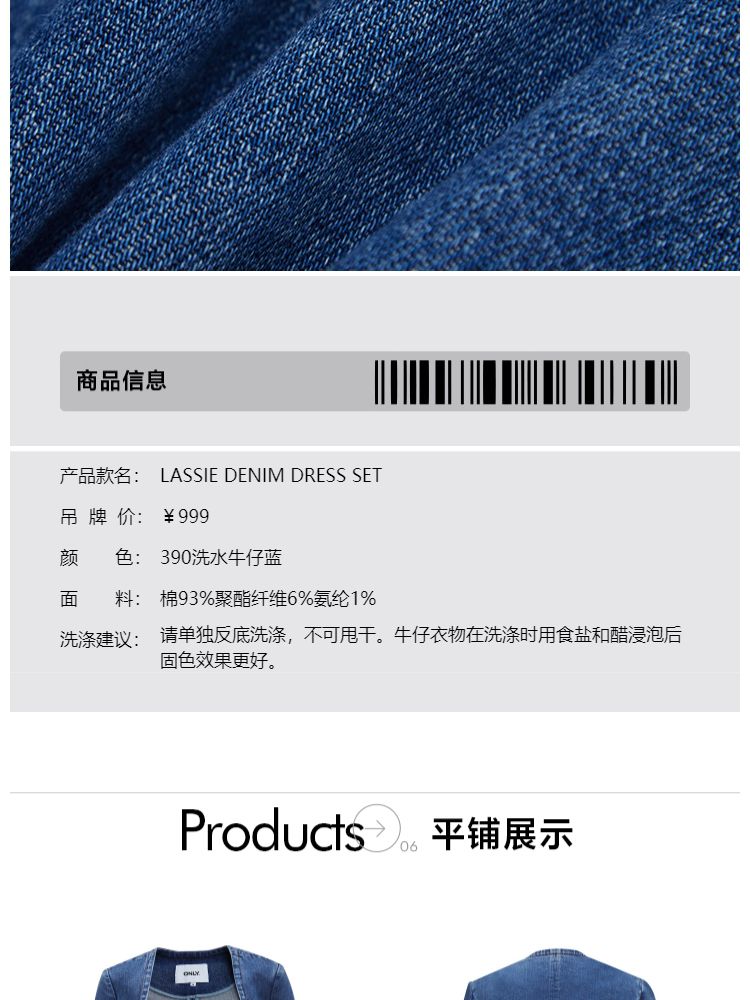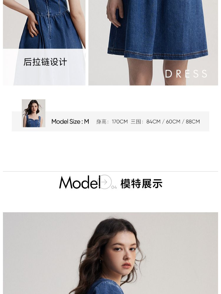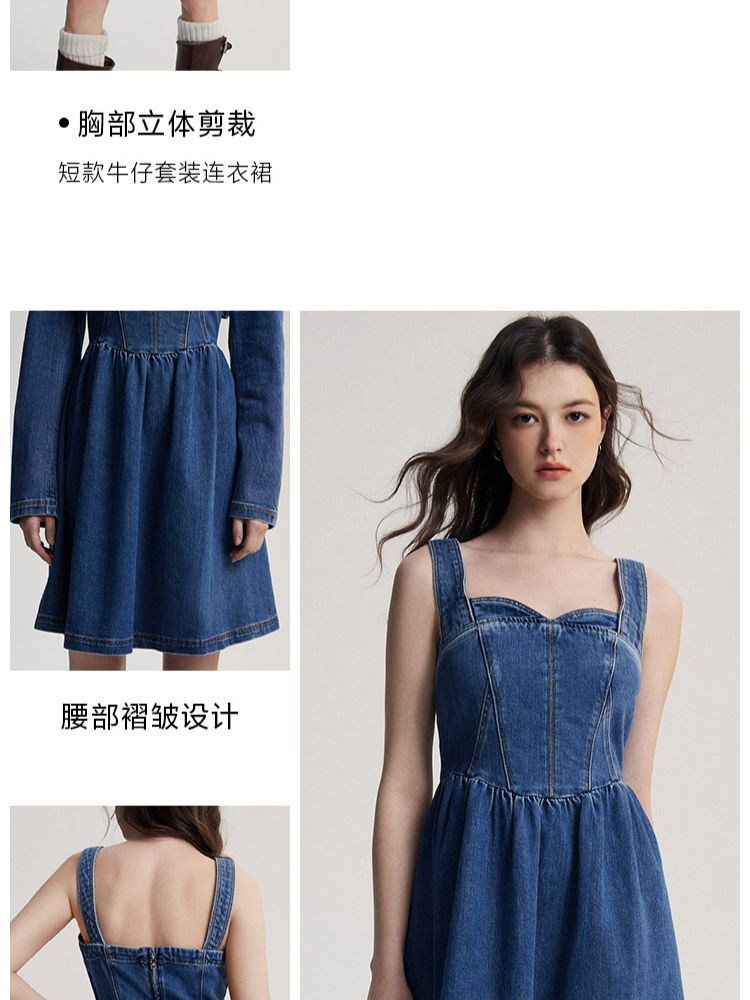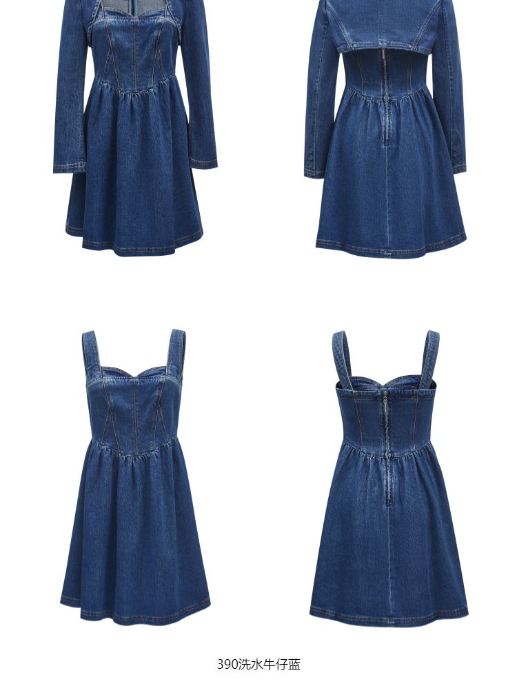 商品名称:【吊带裙+开衫】夏季撞色明线宽肩带收腰A字版型牛仔连衣裙女 788698