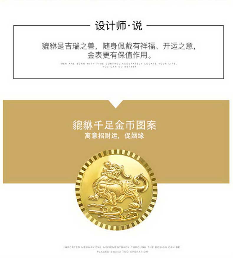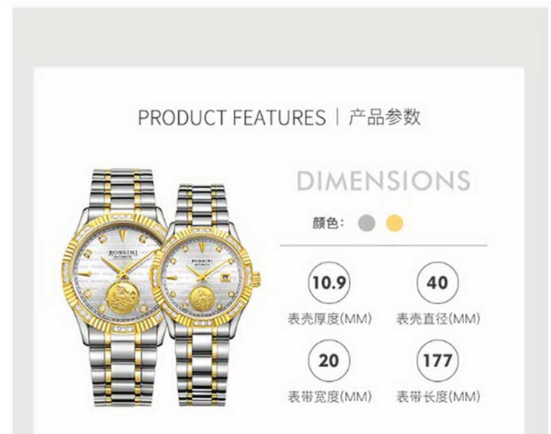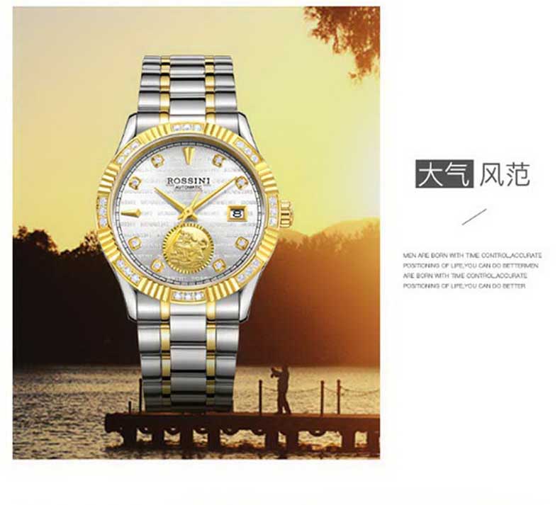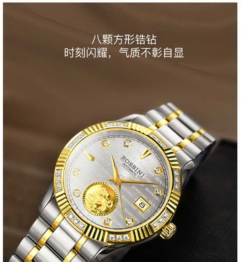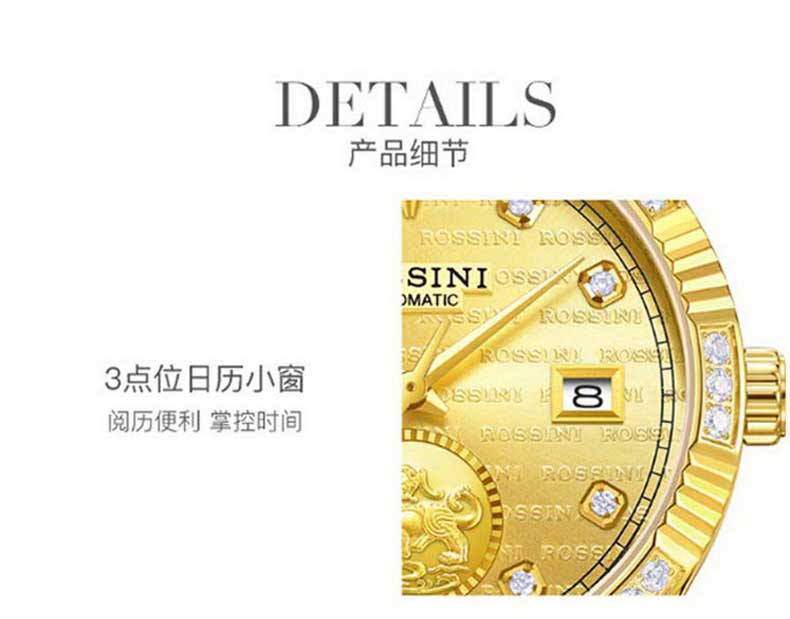 商品名称:Rossini罗西尼 貔貅大气高档时尚腕表日历机械女表 间金白盘钢带 8706T01A