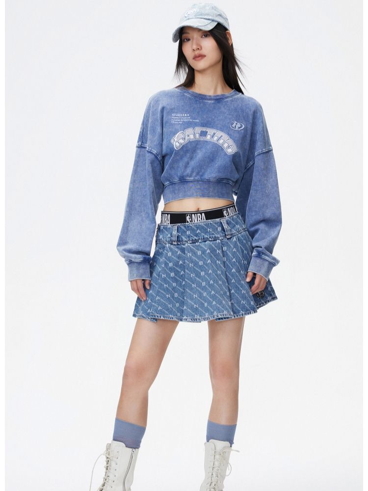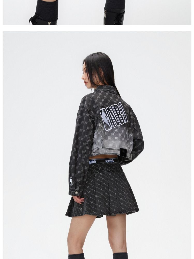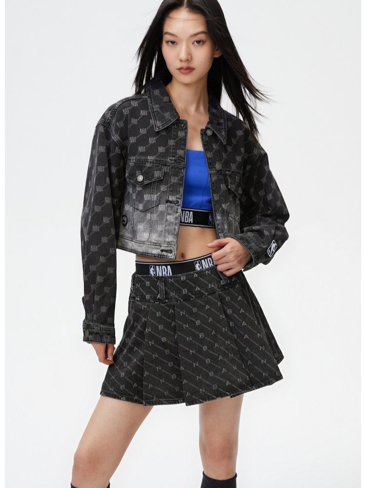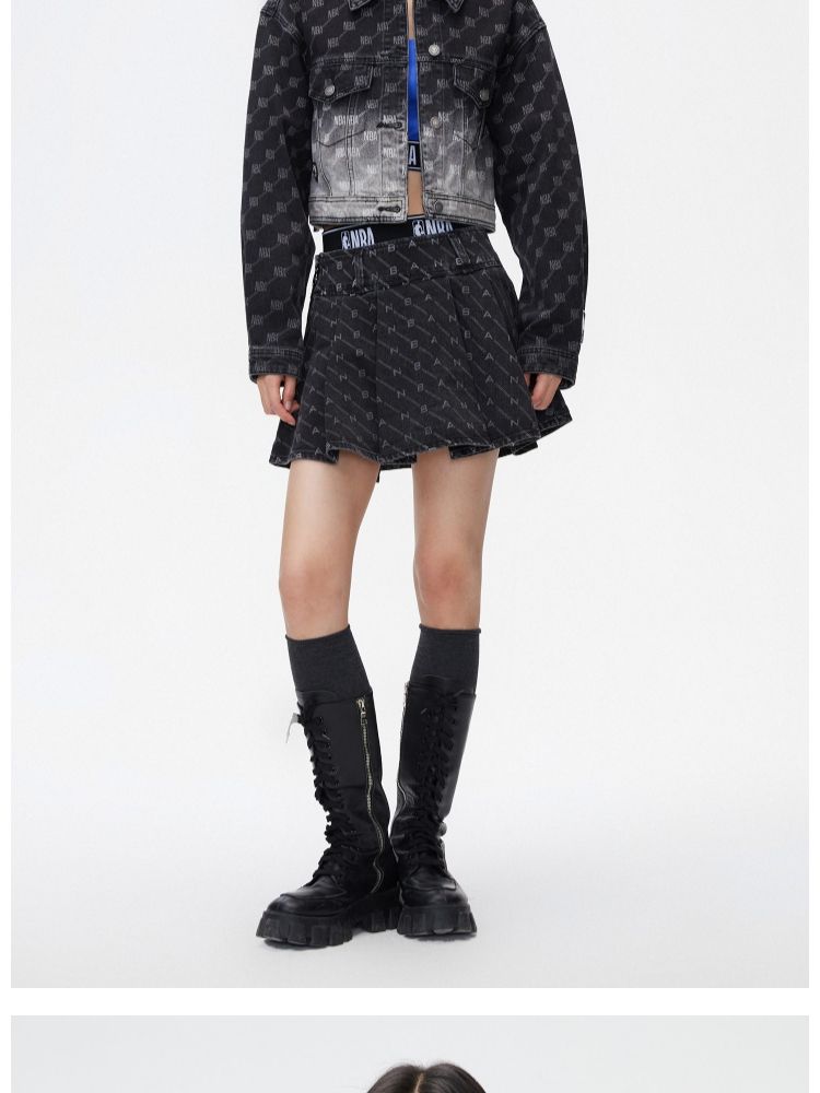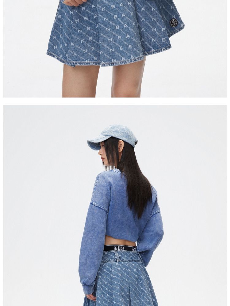 【NBA联名】夏季字母印花高腰牛仔百褶裙半身裙女 641178