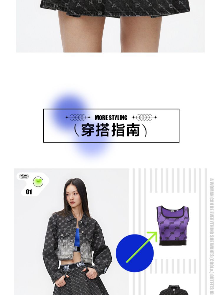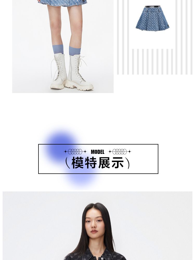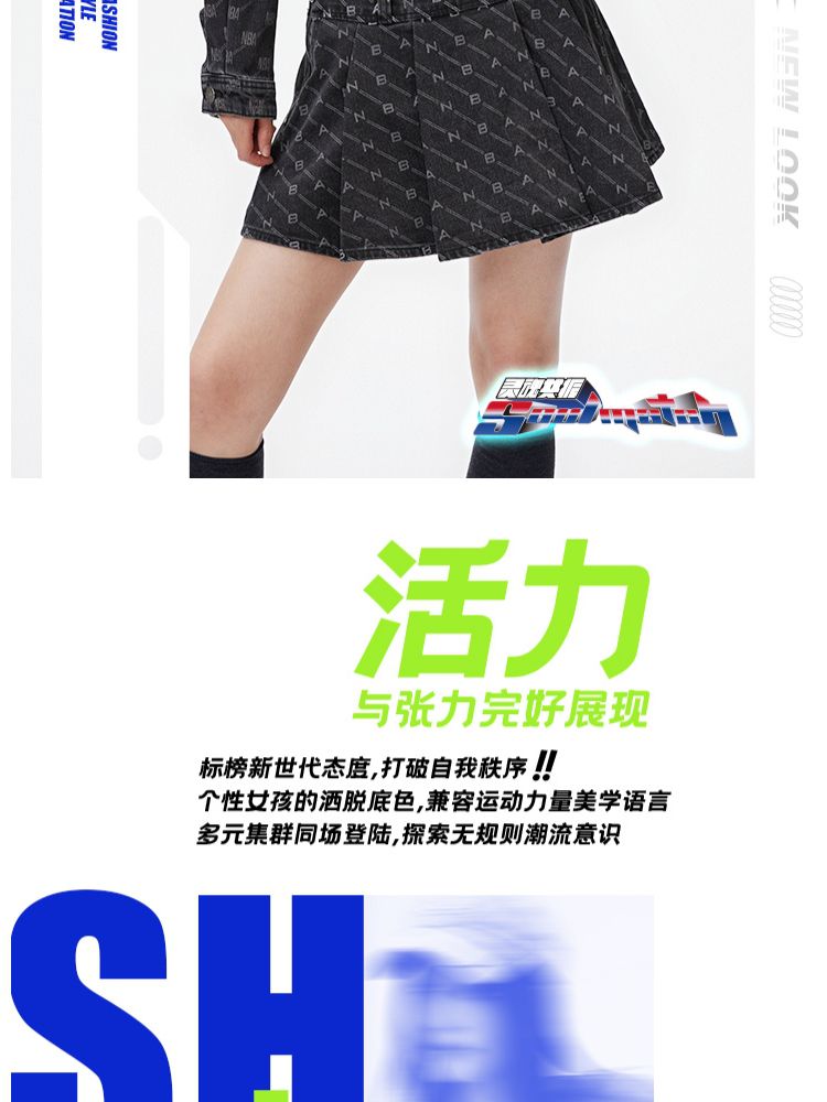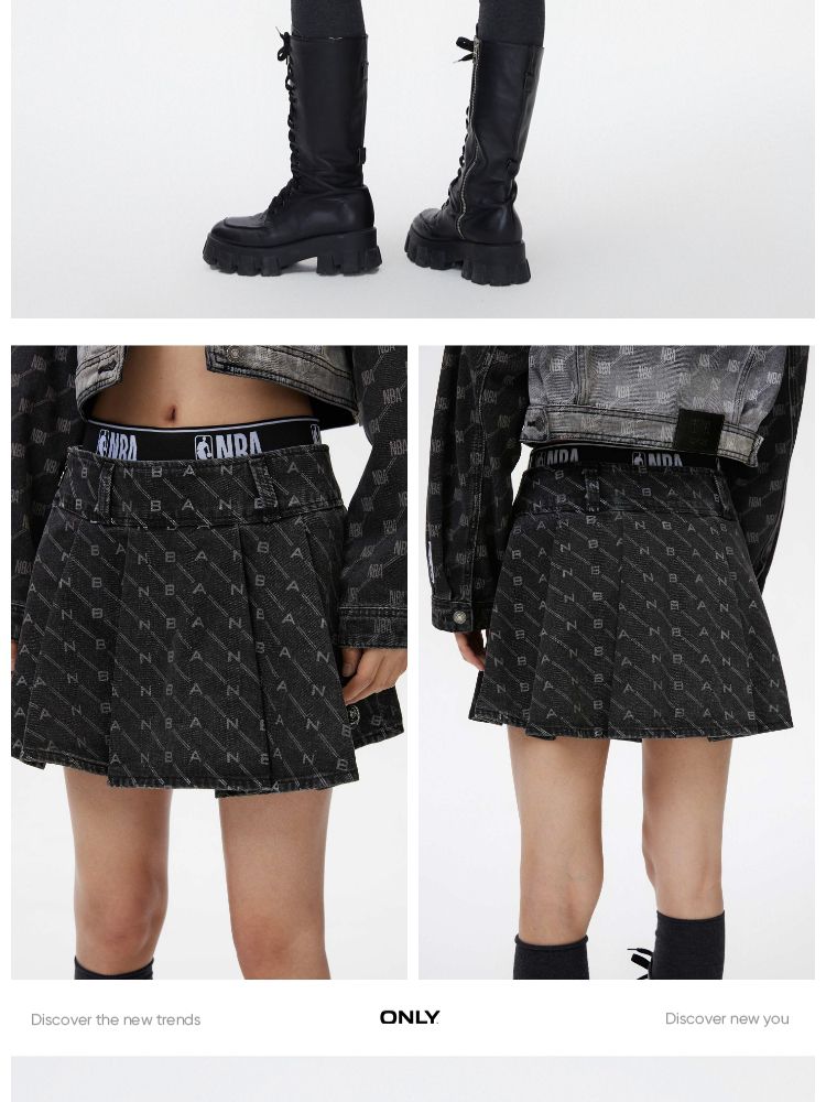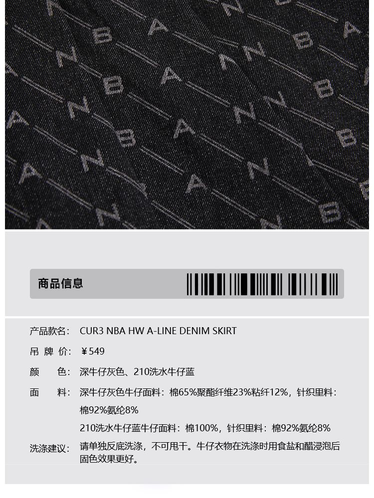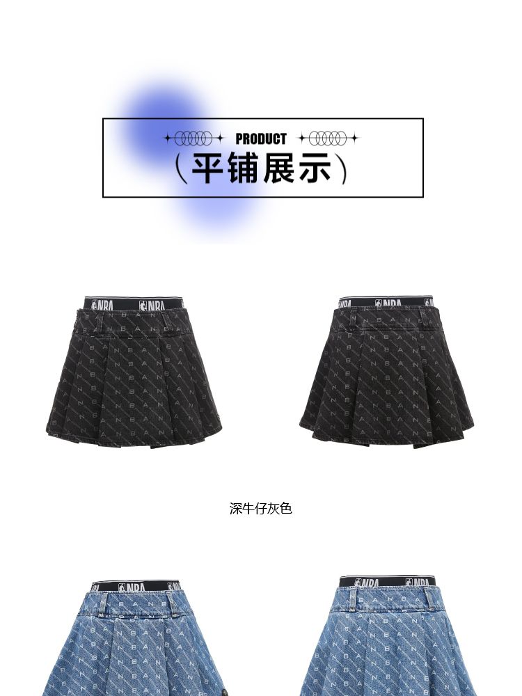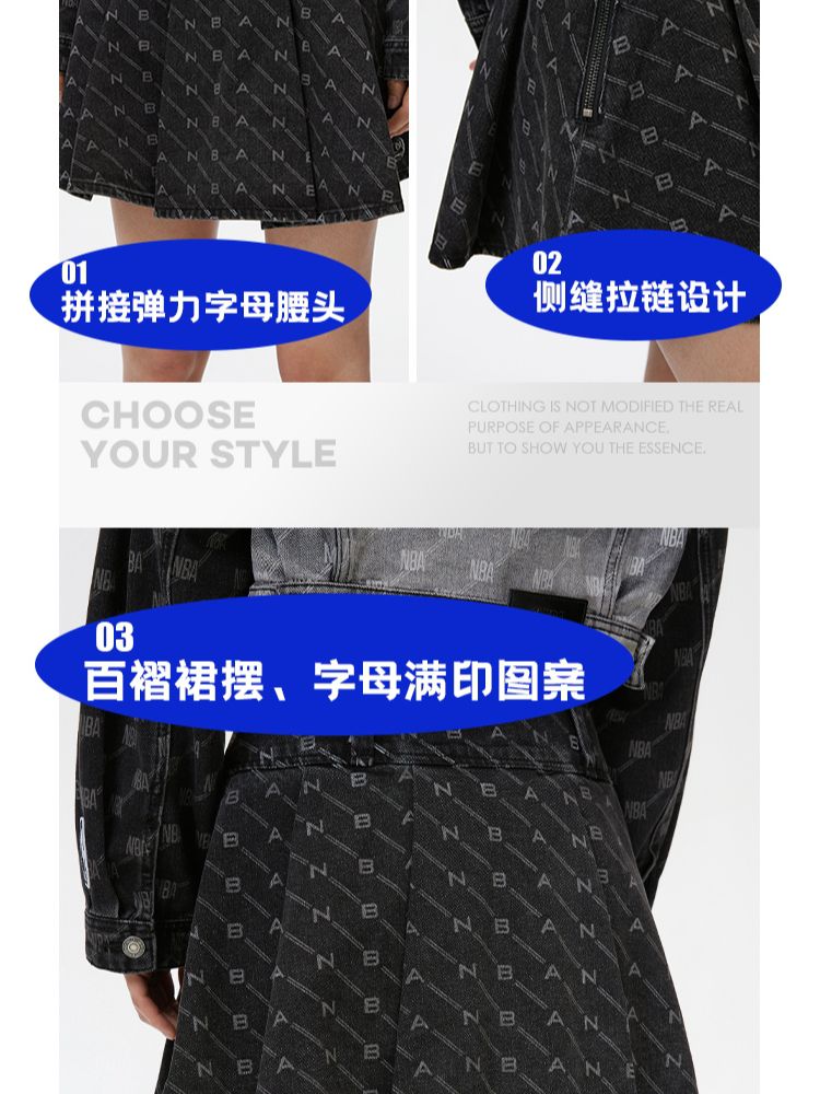 商品名称:【NBA联名】夏季字母印花高腰牛仔百褶裙半身裙女 641178