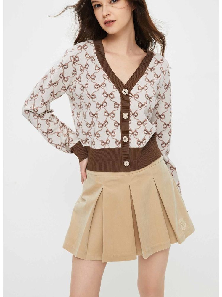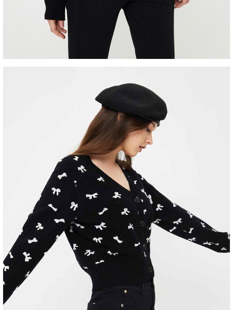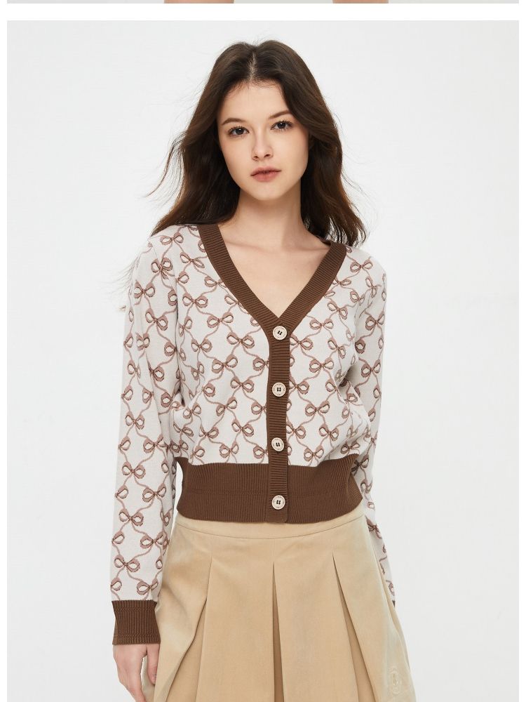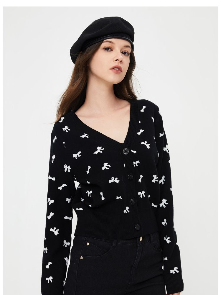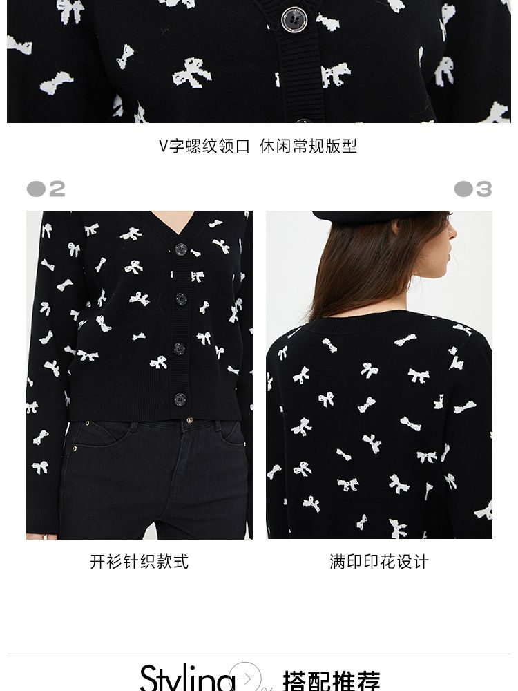 【时尚潮流】春季时尚休闲百搭V字领印花开衫针织衫女 299098