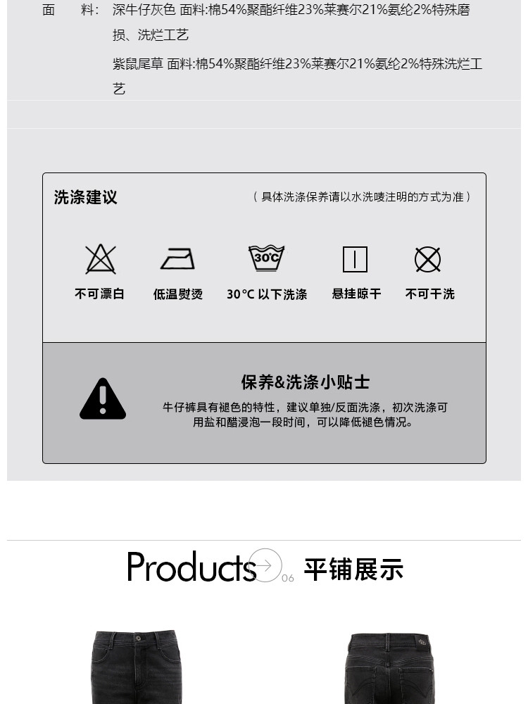 | M(标准裤长) | 58 | 71 | 105.5 | 93 | 165/68A |