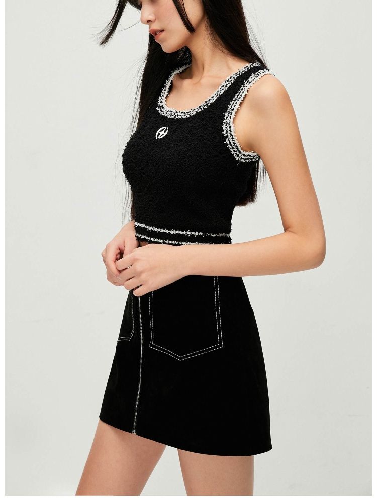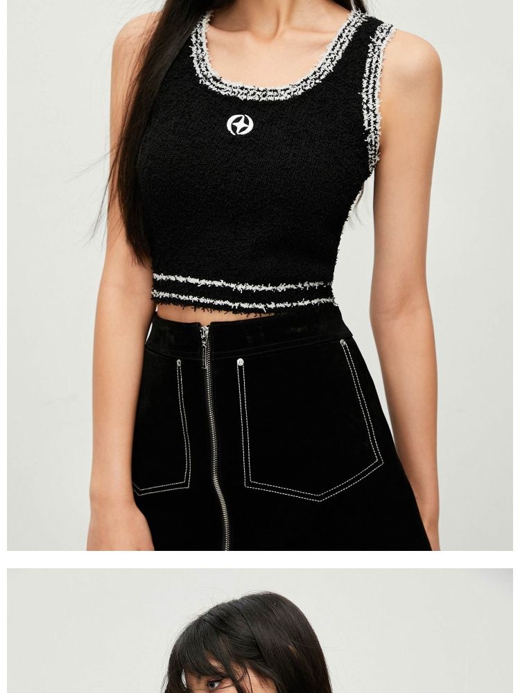 【短款吊带】春季气质百搭修身刺绣短款吊带针织衫女 303322